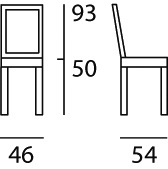 Détails Techniques : Structure en frêne massif – Assise tapissée sur sangle élastique mousse HR 40 kg/m3 – Assemblage tenons mortaises – H 93 – L 46 – P 56 – H ass. 50