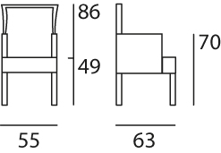 Détails Techniques : Structure en hêtre massif – Assise tapissée sur sangle élastique mousse HR 40 kg/m3 – Assemblage tenons mortaises – H 86 – L 55 – P 63 – H acc. 70 – H ass. 55 – Poids 8 kg