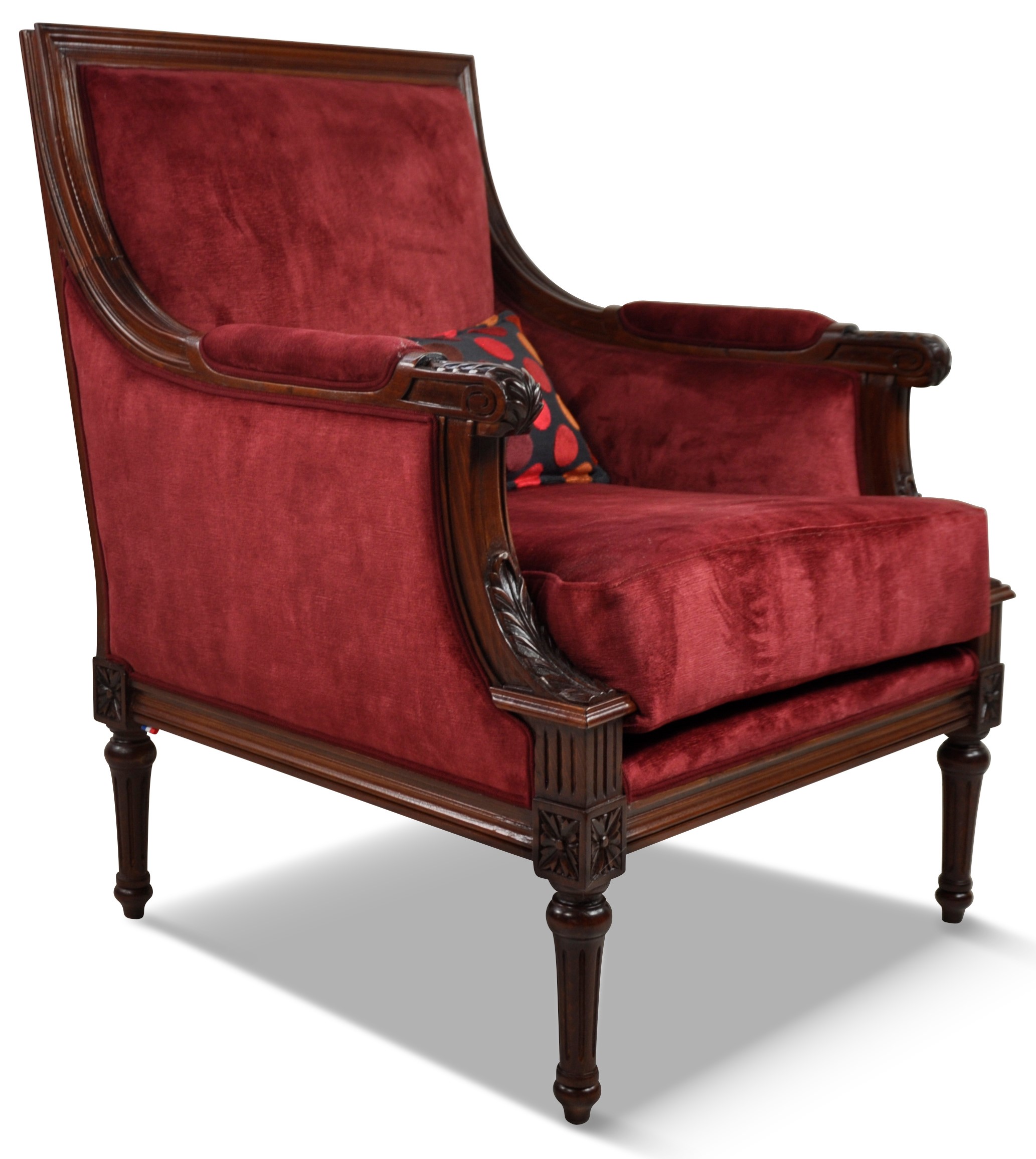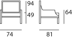 Détails Techniques : Structure en hêtre massif – Sculpture main – Assise tapissée sur sangles en jute et ressorts biconiques tapissiers – Mousses polyuréthane : dossier et côté 35 kg/m3, coussin 25 kg/m3 – H 94 – L 74 – P 81 – H acc. 64 – H ass. 46 – Poids 19 kg