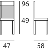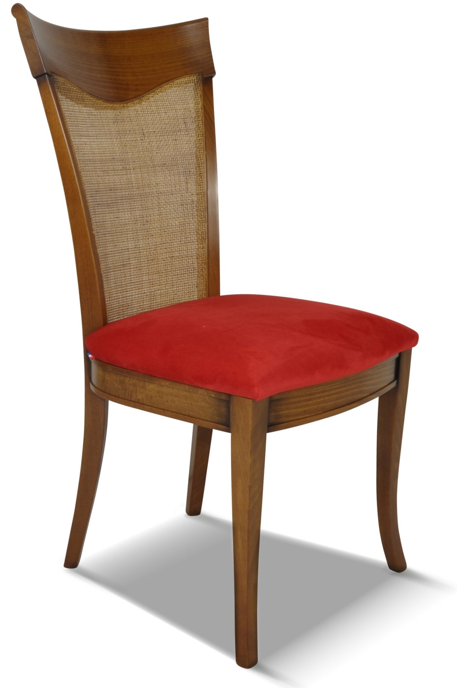 Détails Techniques : Structure en hêtre massif – Assise tapissée sur sangle élastique – Mousse HR 40 kg/m3 – Assemblage tenons mortaises dos cannage industriel – H 95 – L 46 – P 58 – H ass. 49