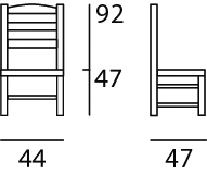 Détails Techniques : 134 : Structure en hêtre massif – H 91 – L 44 – P 49 – H ass. 47 – F 134 : H 98 – L 52 – P 45 – H acc. 67 – H ass. 46