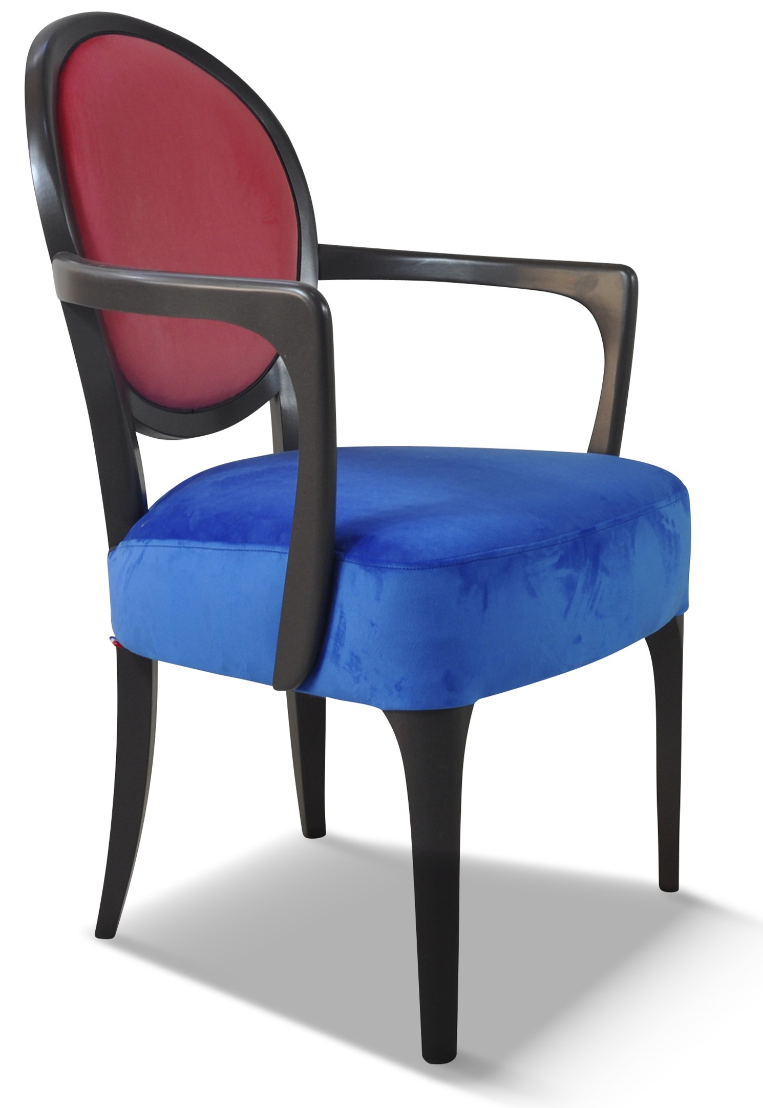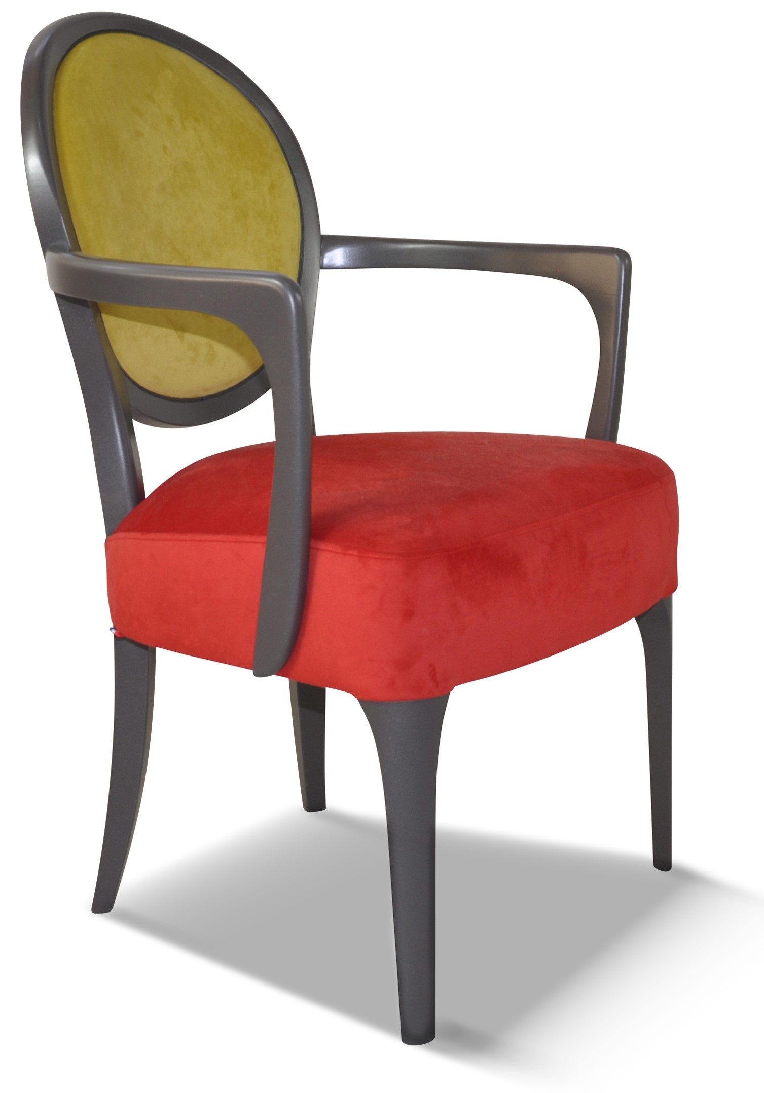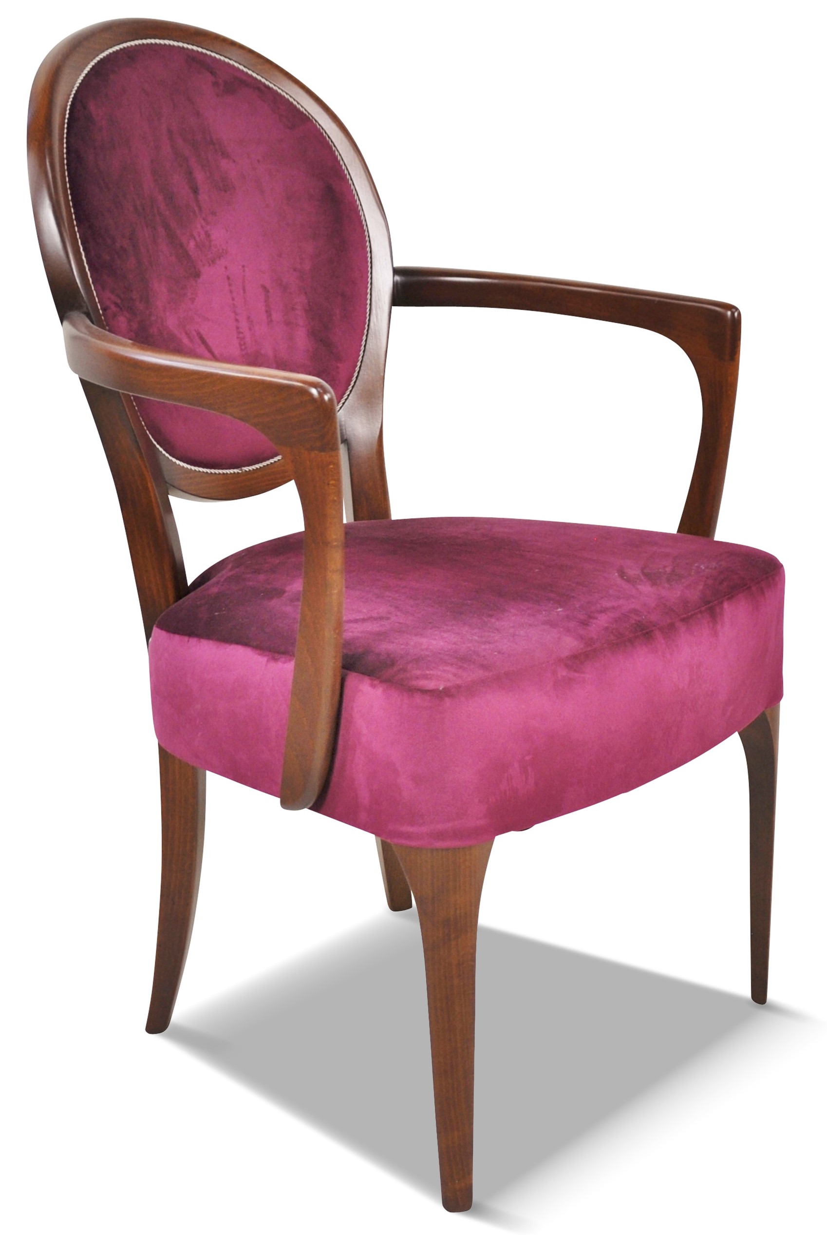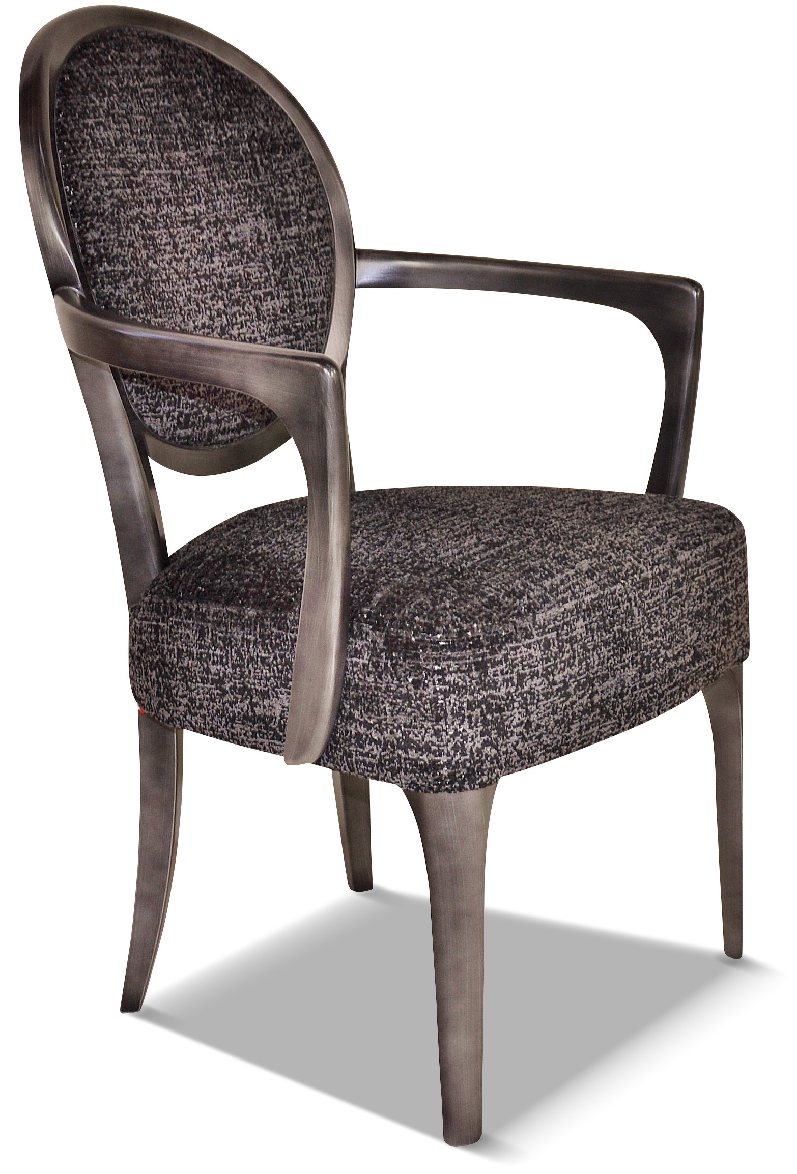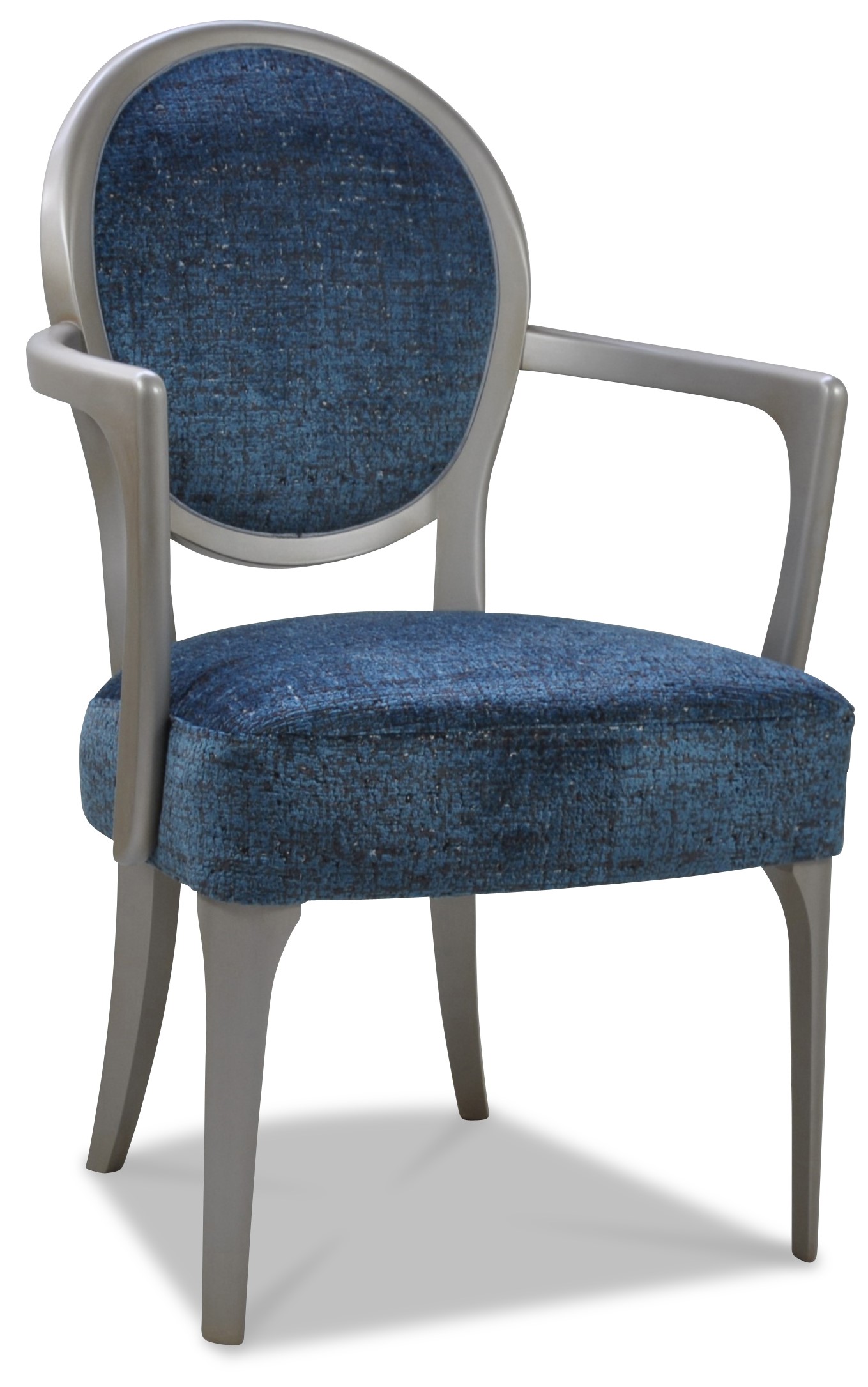 Fauteuil médaillon élégant et raffiné aux accoudoirs galbés et harmonieux.