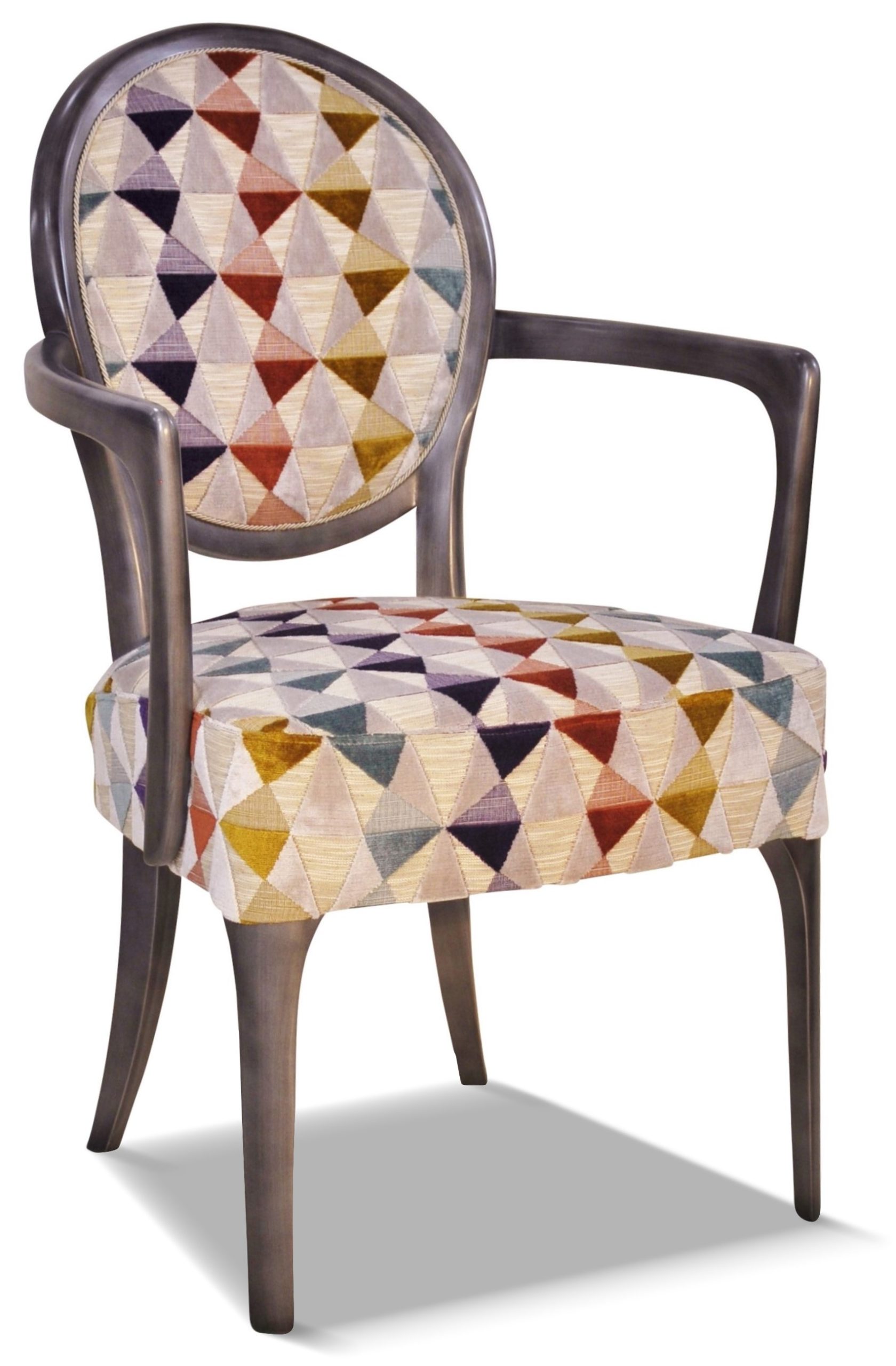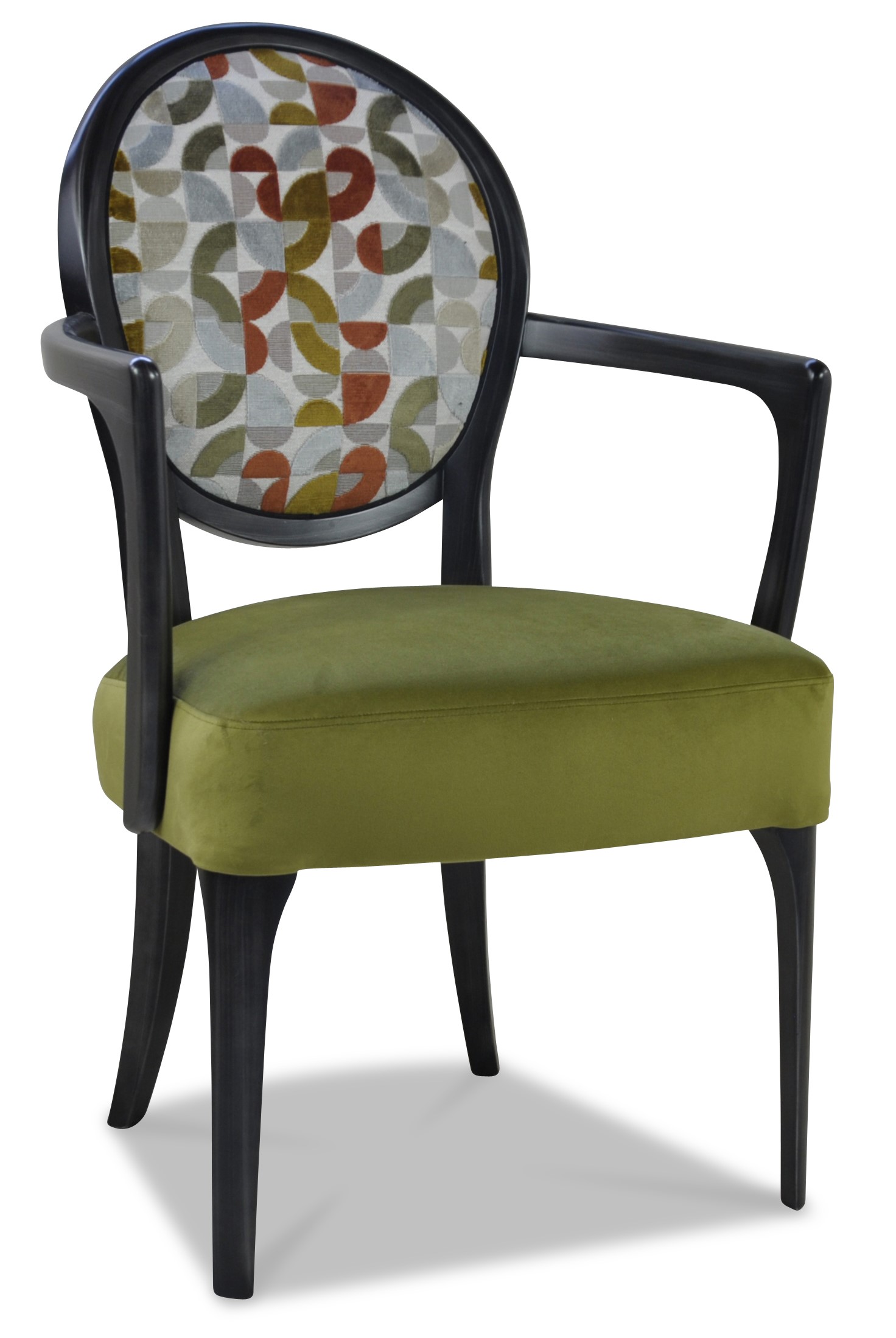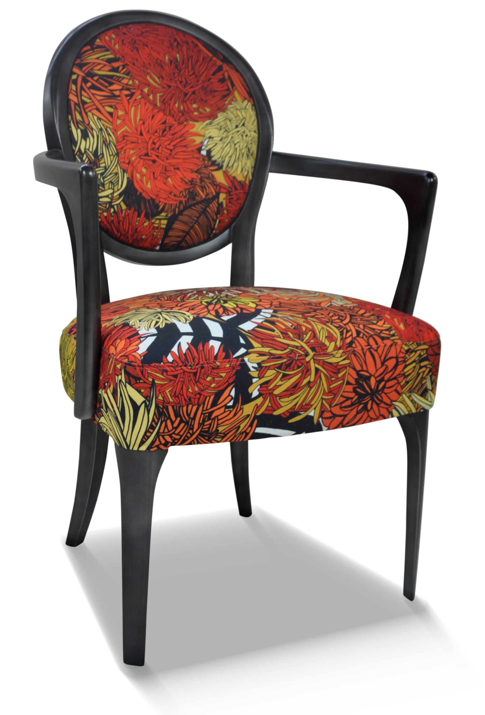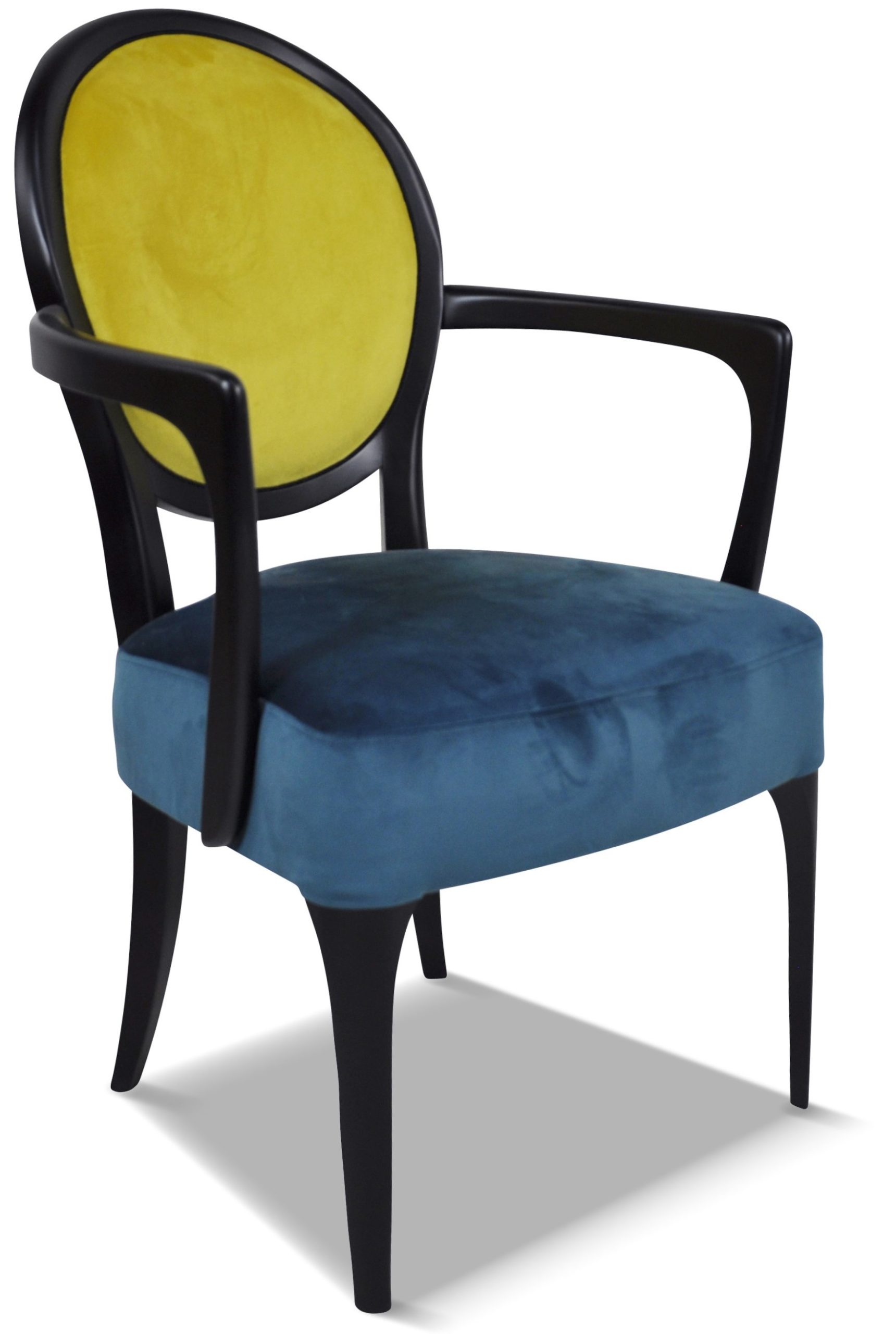 Fauteuil médaillon élégant et raffiné aux accoudoirs galbés et harmonieux.