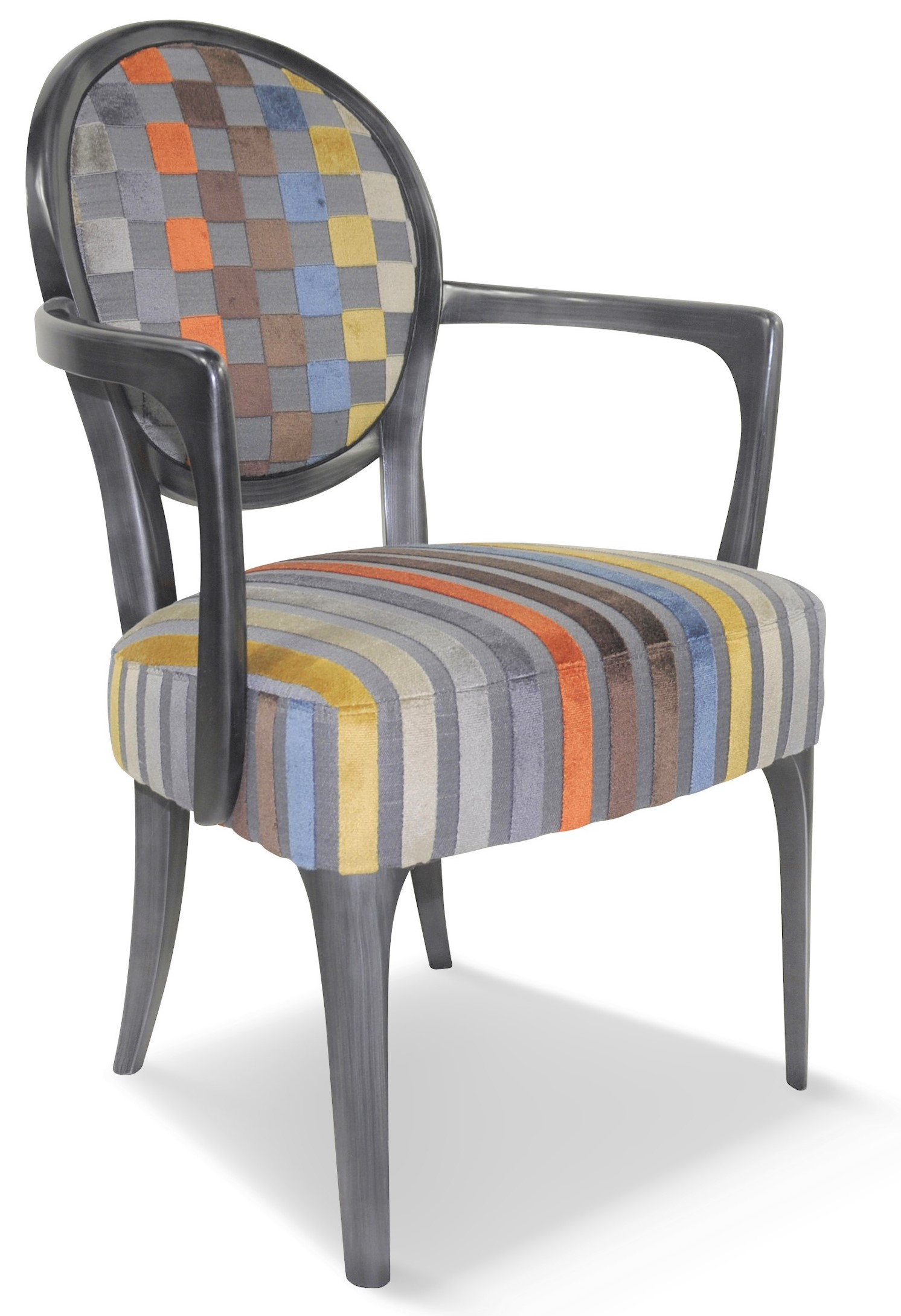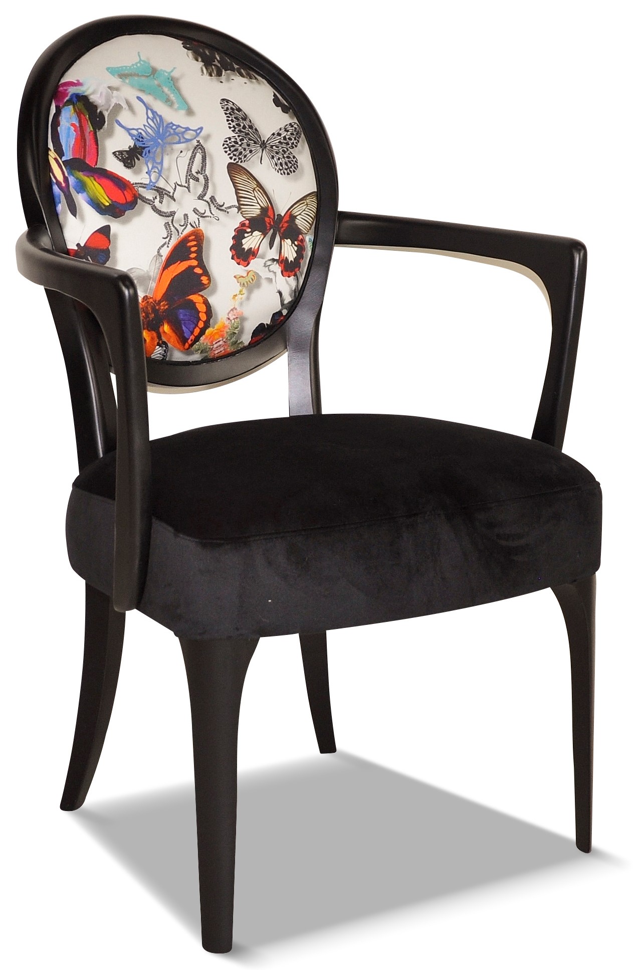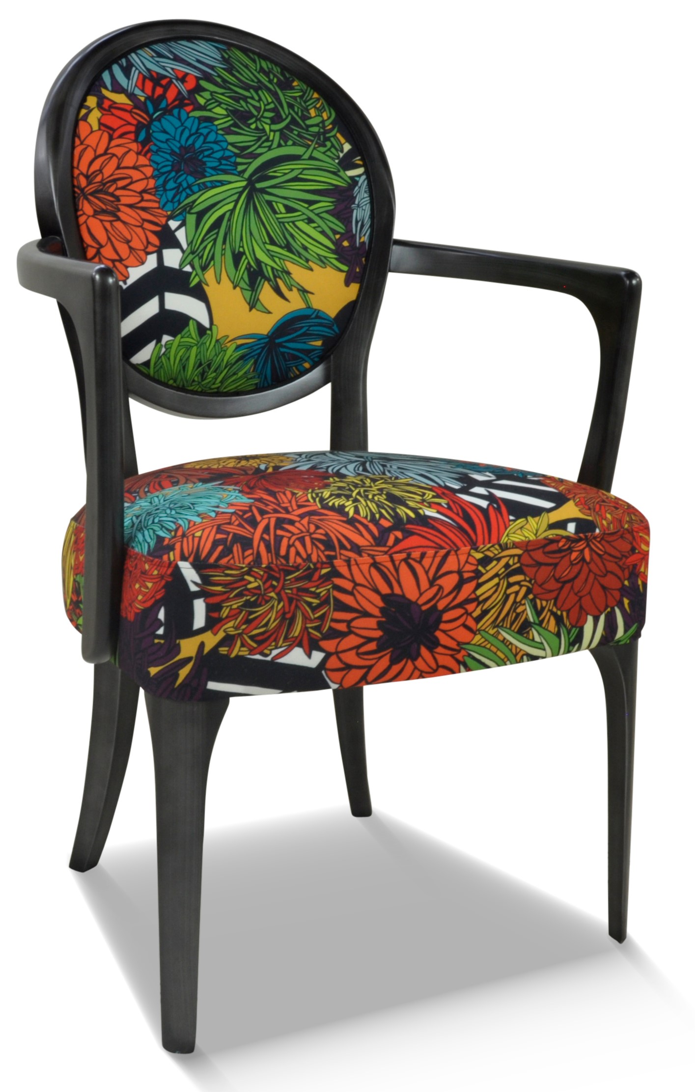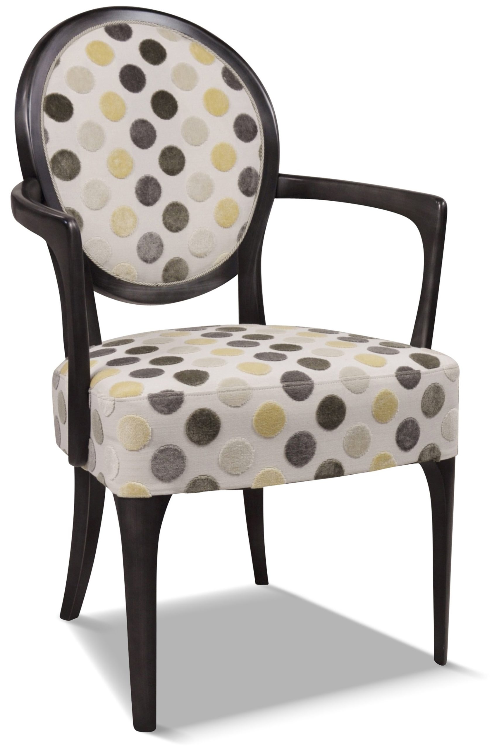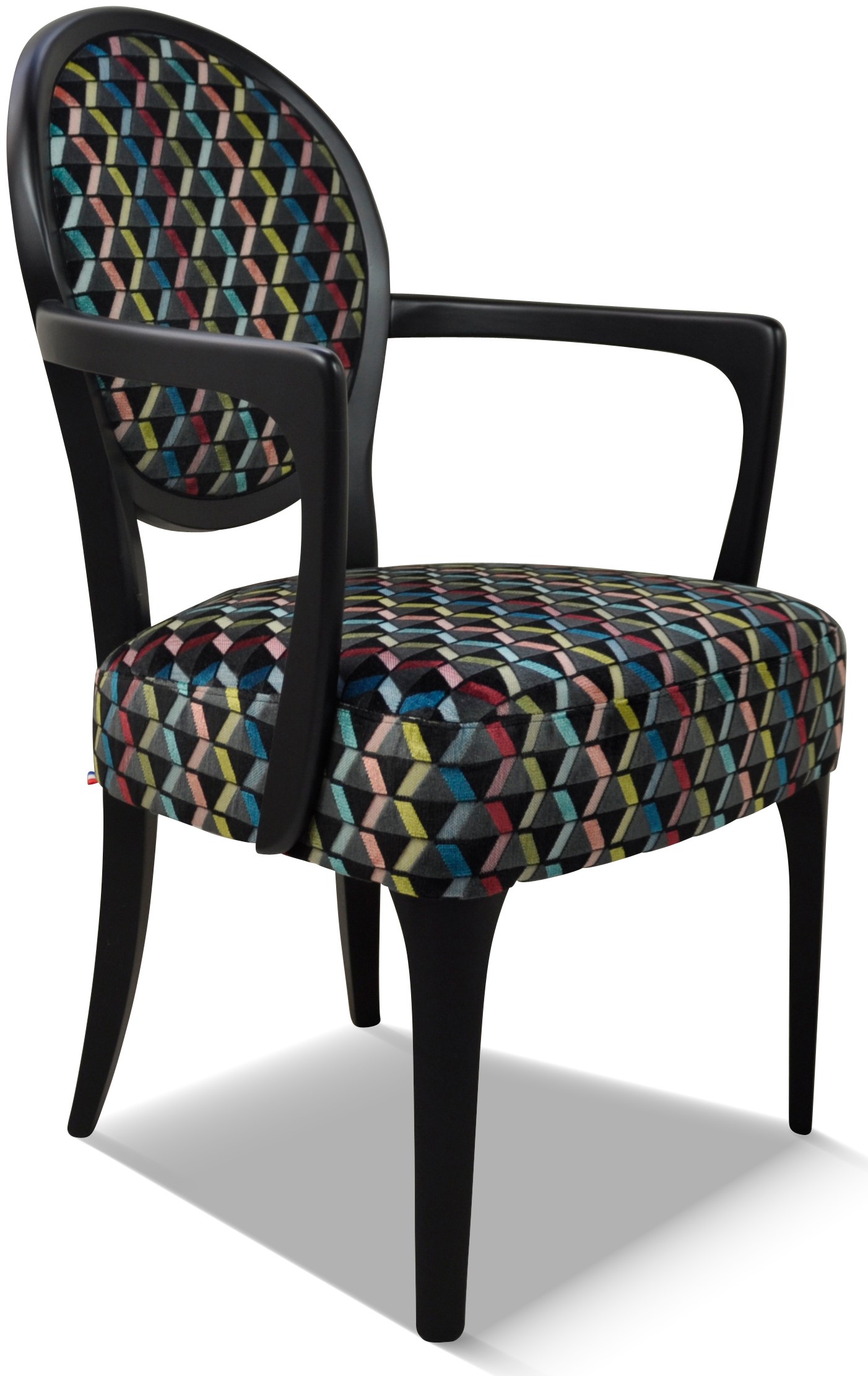 Fauteuil médaillon élégant et raffiné aux accoudoirs galbés et harmonieux.