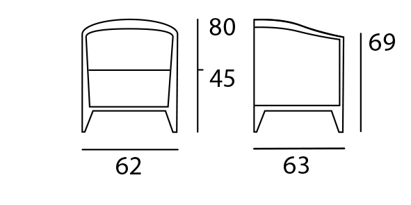 Détails Techniques : Structure en hêtre massif assemblage tenons mortaises mousses HR 40 kg/m3 – H 80 – L 62 – P 63 – H acc. 69 – H ass. 45 – Poids 16,4 kg