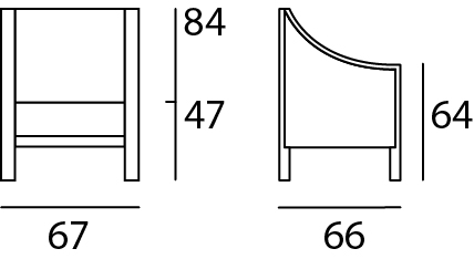 Dimensions : H-84 – L-66 cm – P-62 – H. acc. 64- H.ass- 47.