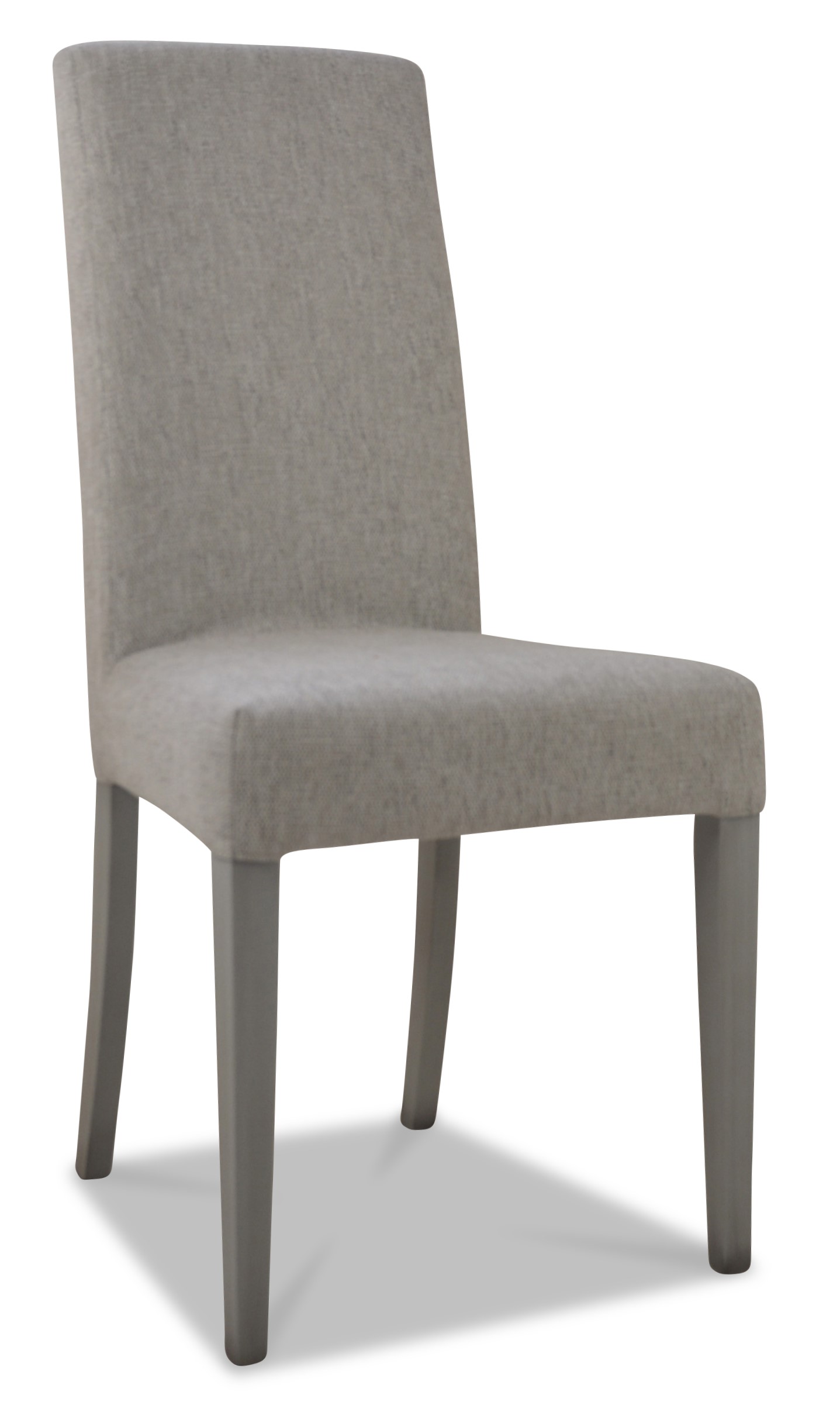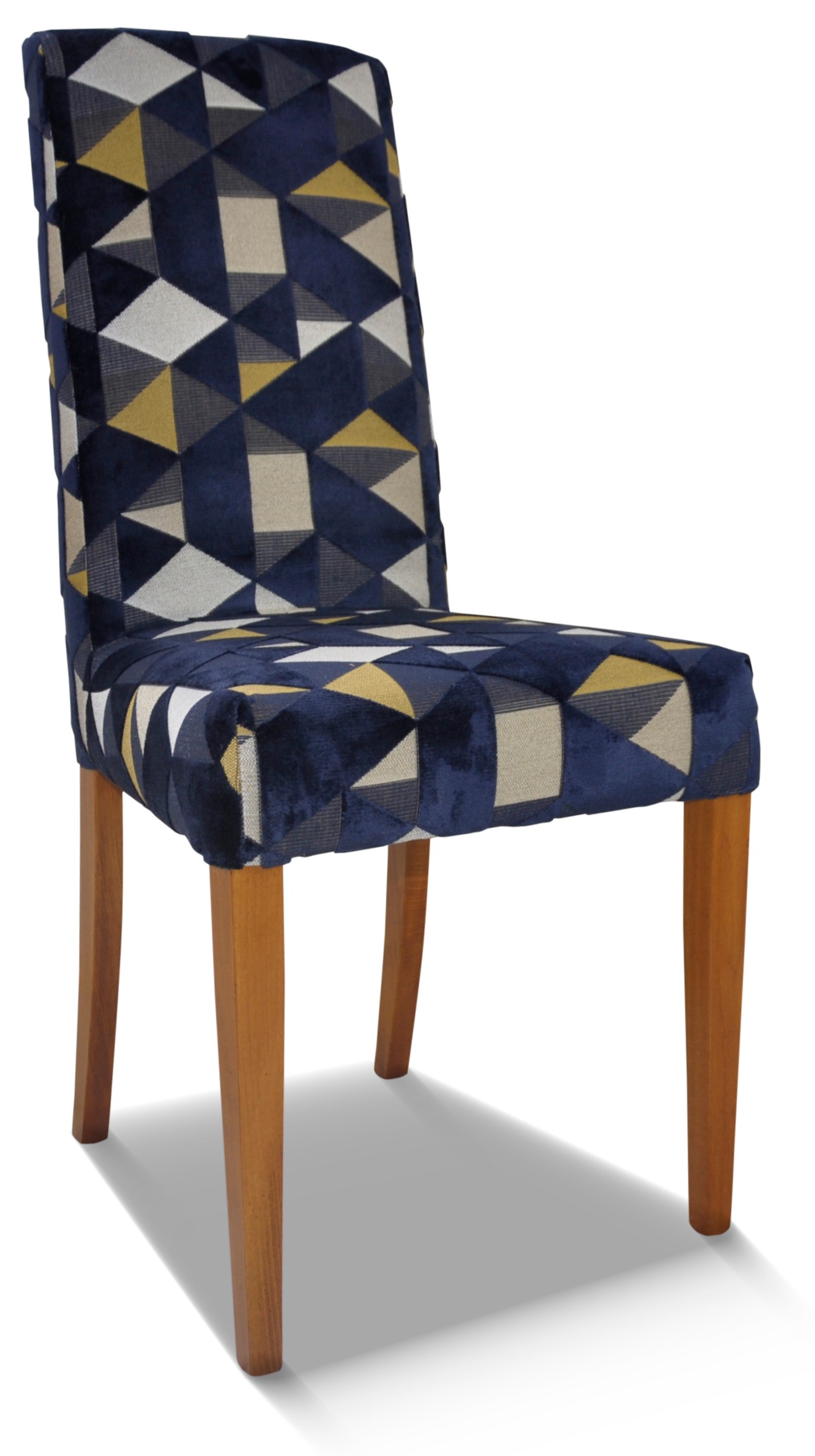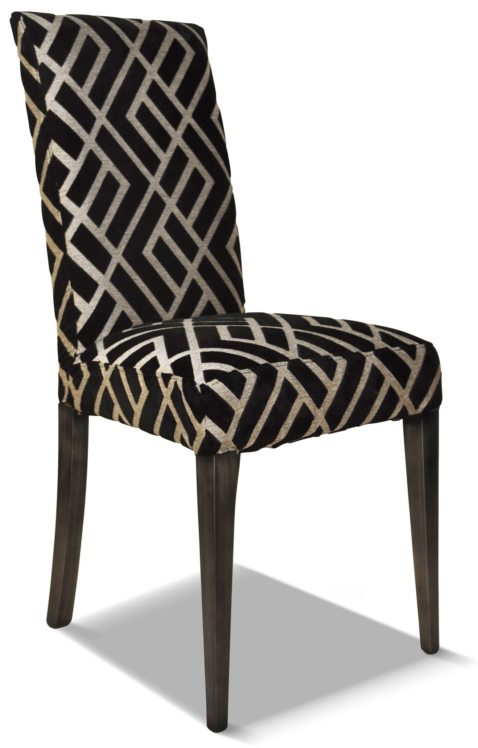Chaise contemporaine élégante et sobre, sa finition bois est assortie à un tissu chic.