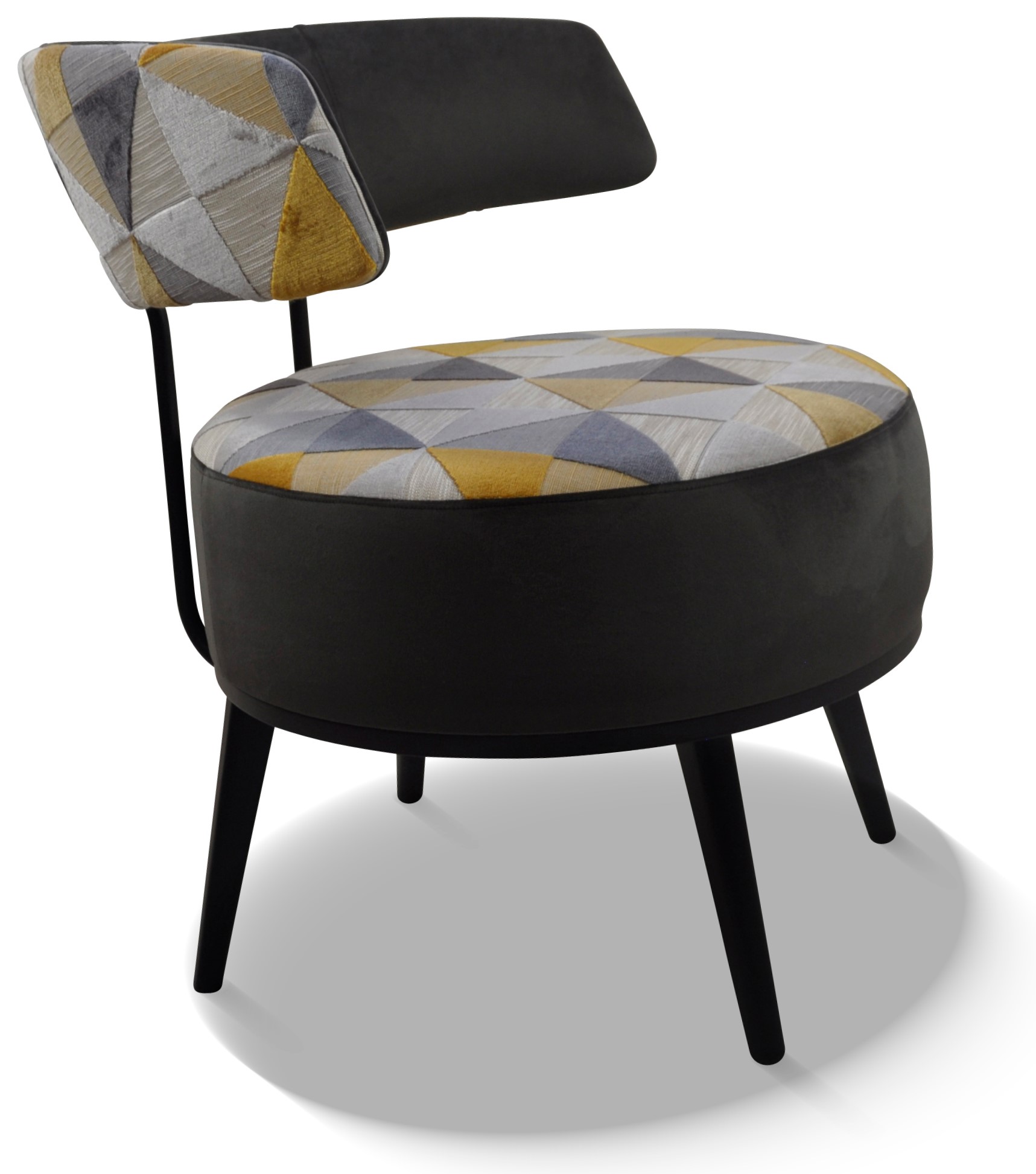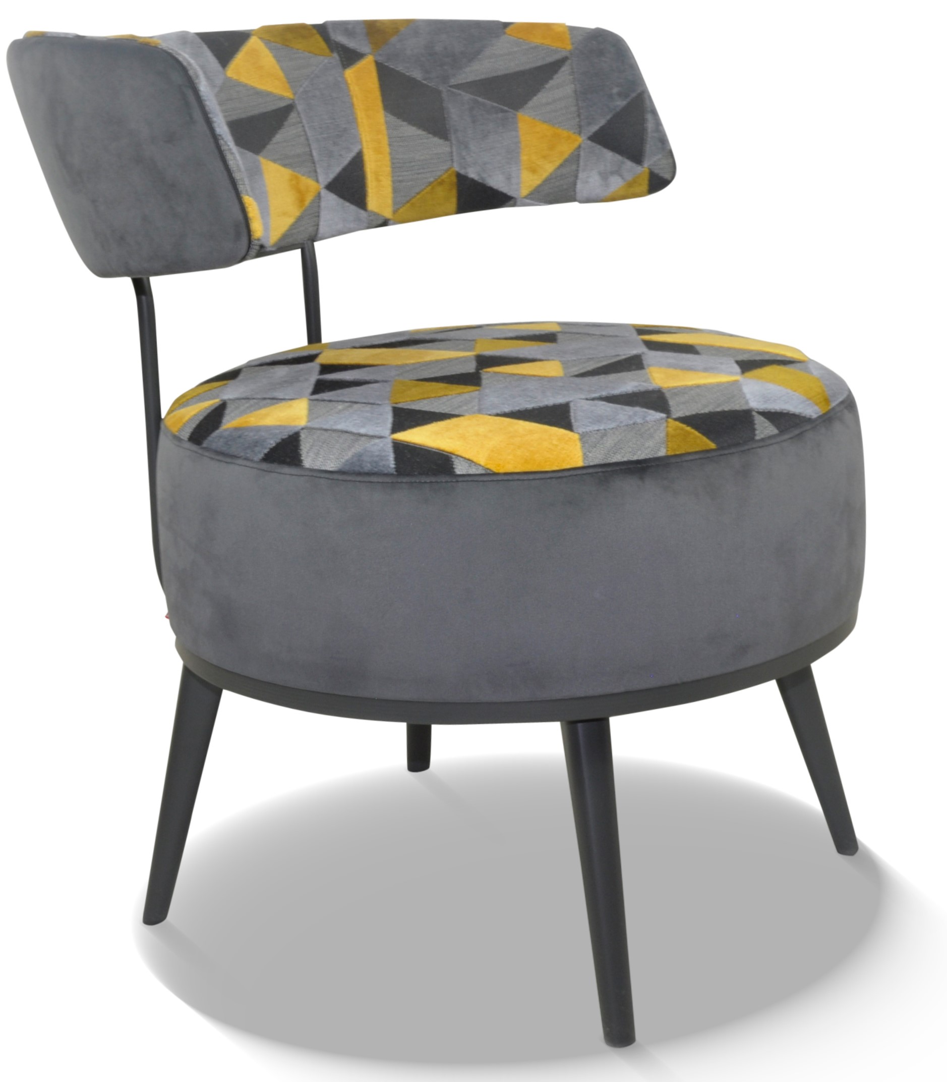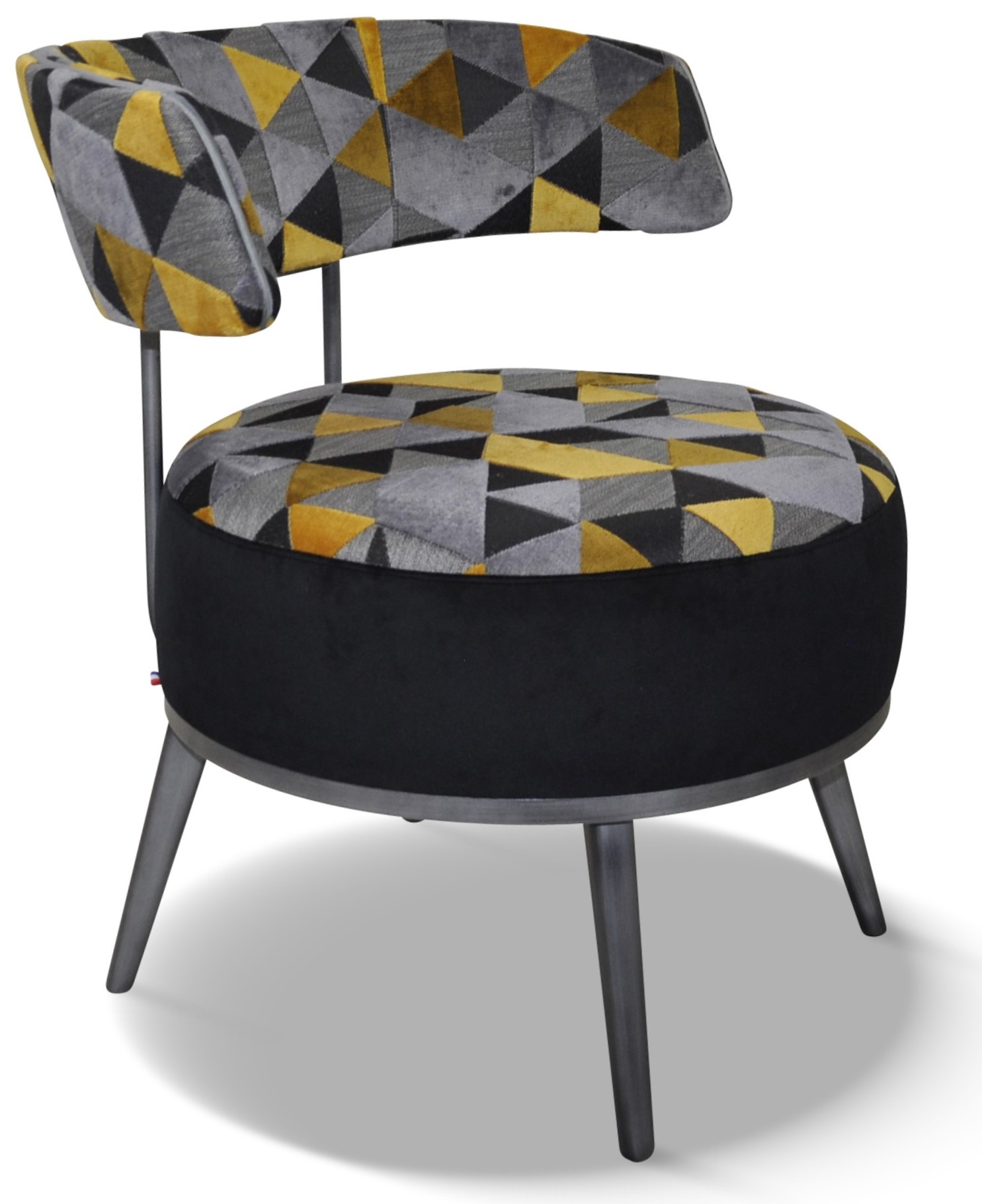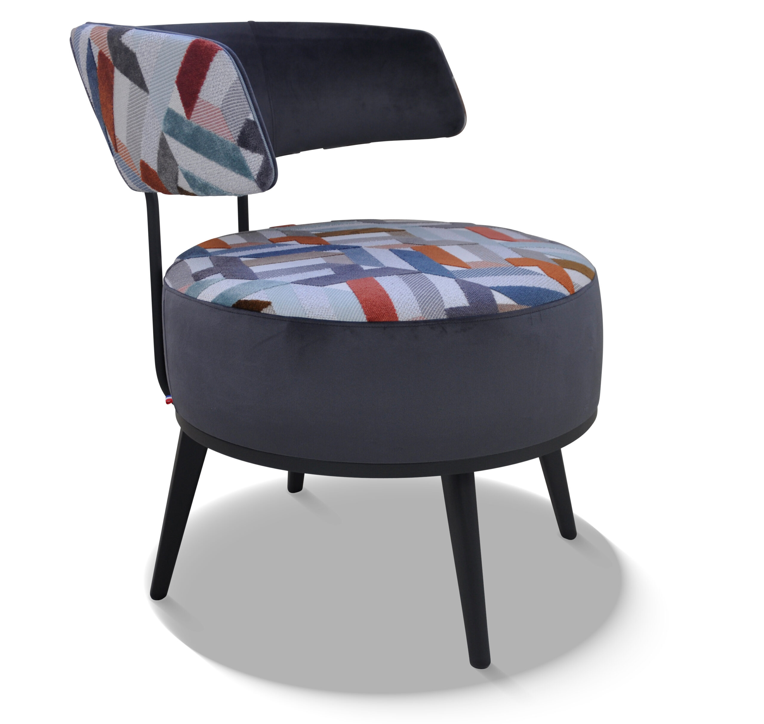 Détails techniques : structure assise en pin/ fond agglo/ dossier multipli cintré à la vapeur/ métal, mousse HR 40kg/m3.