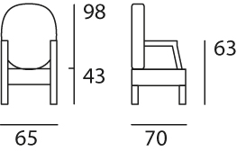 Détails Techniques : Structure en hêtre massif – Assise sur ressorts biconiques – H 98 – L 65 – P 70 – H ass. 43 – H acc. 63