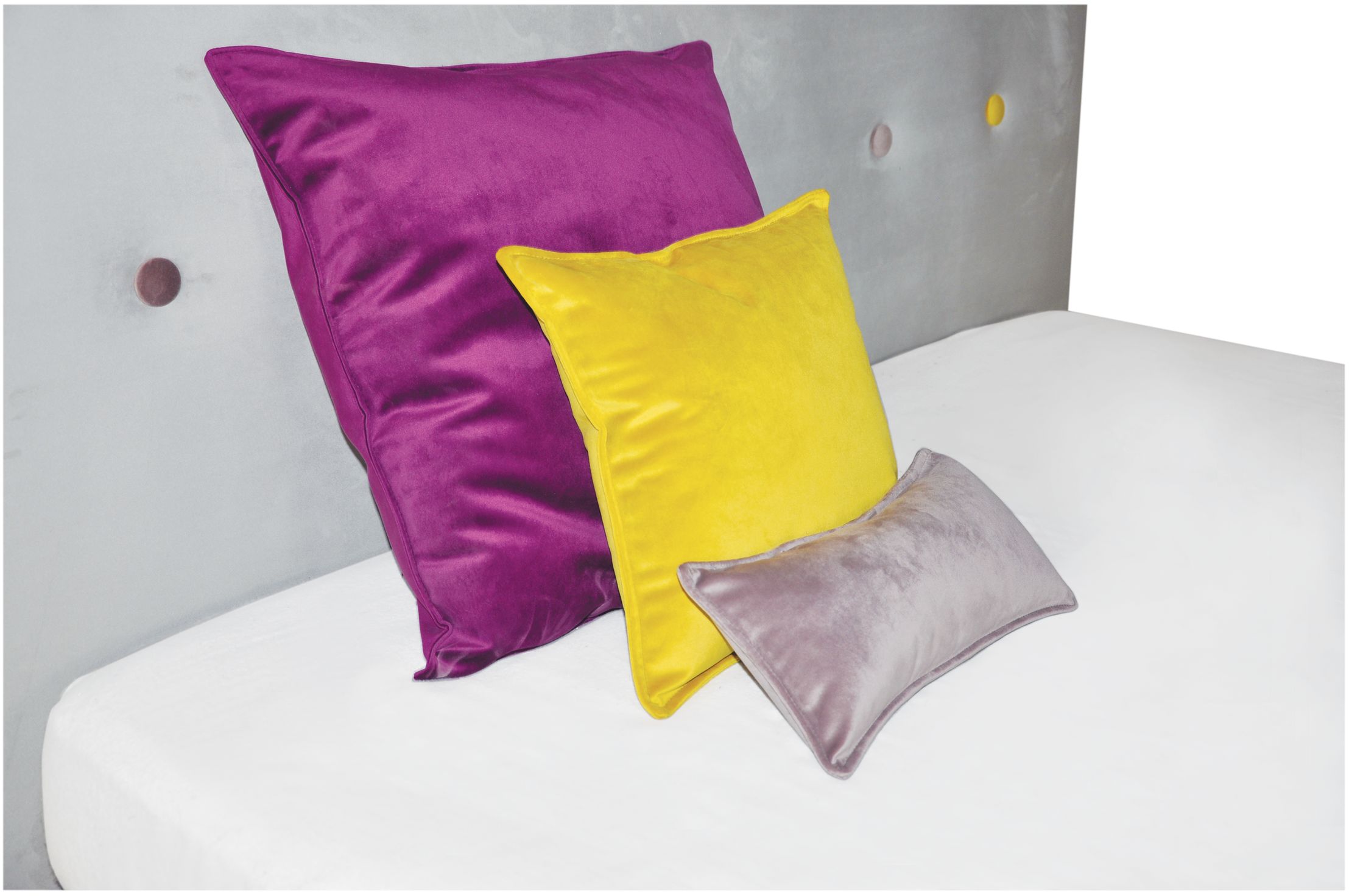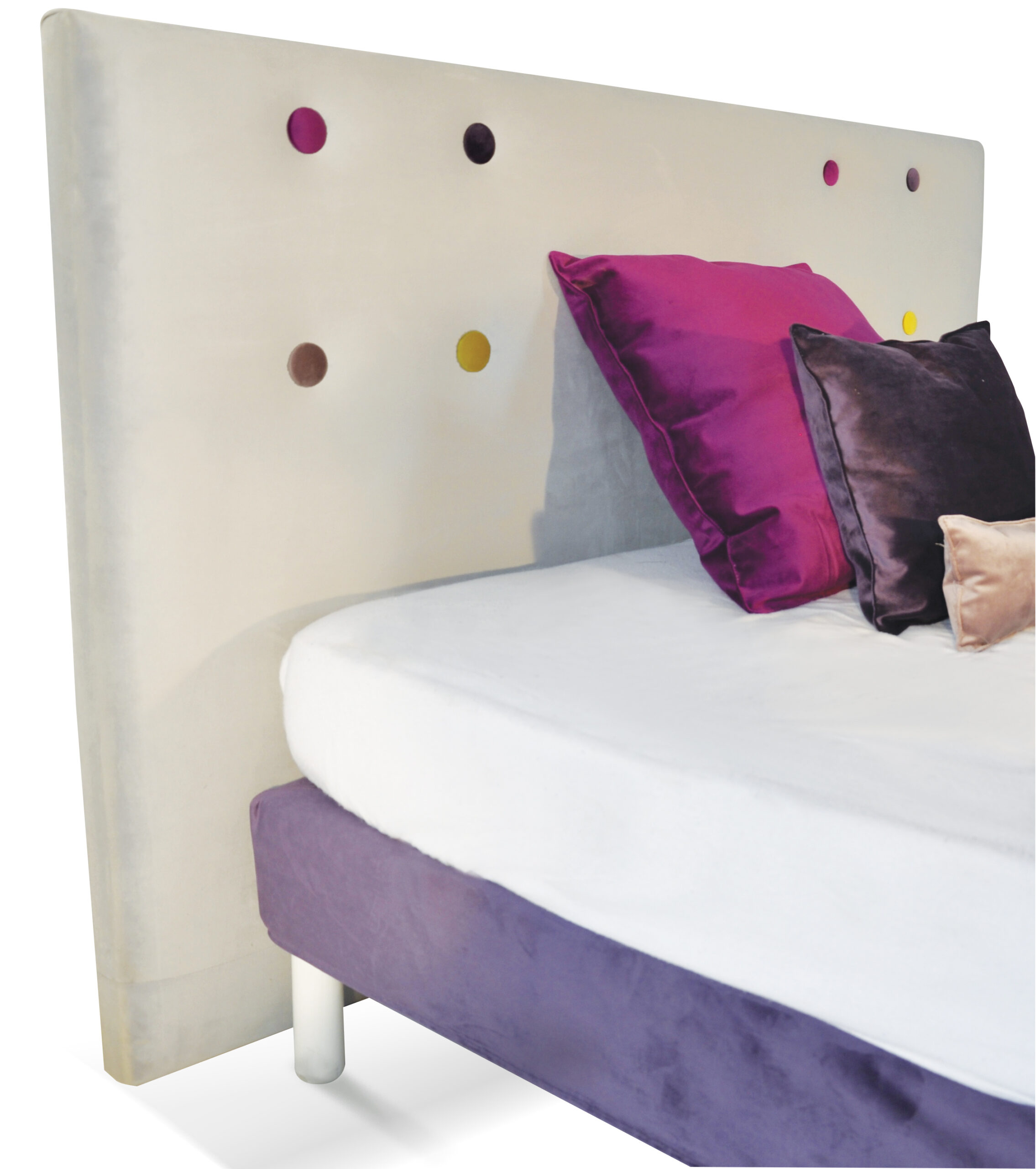 Tête de lit avec un boutonnage, personnalisation extrême avec la possibilité de choisir le tissu principal et même pour chaque bouton.