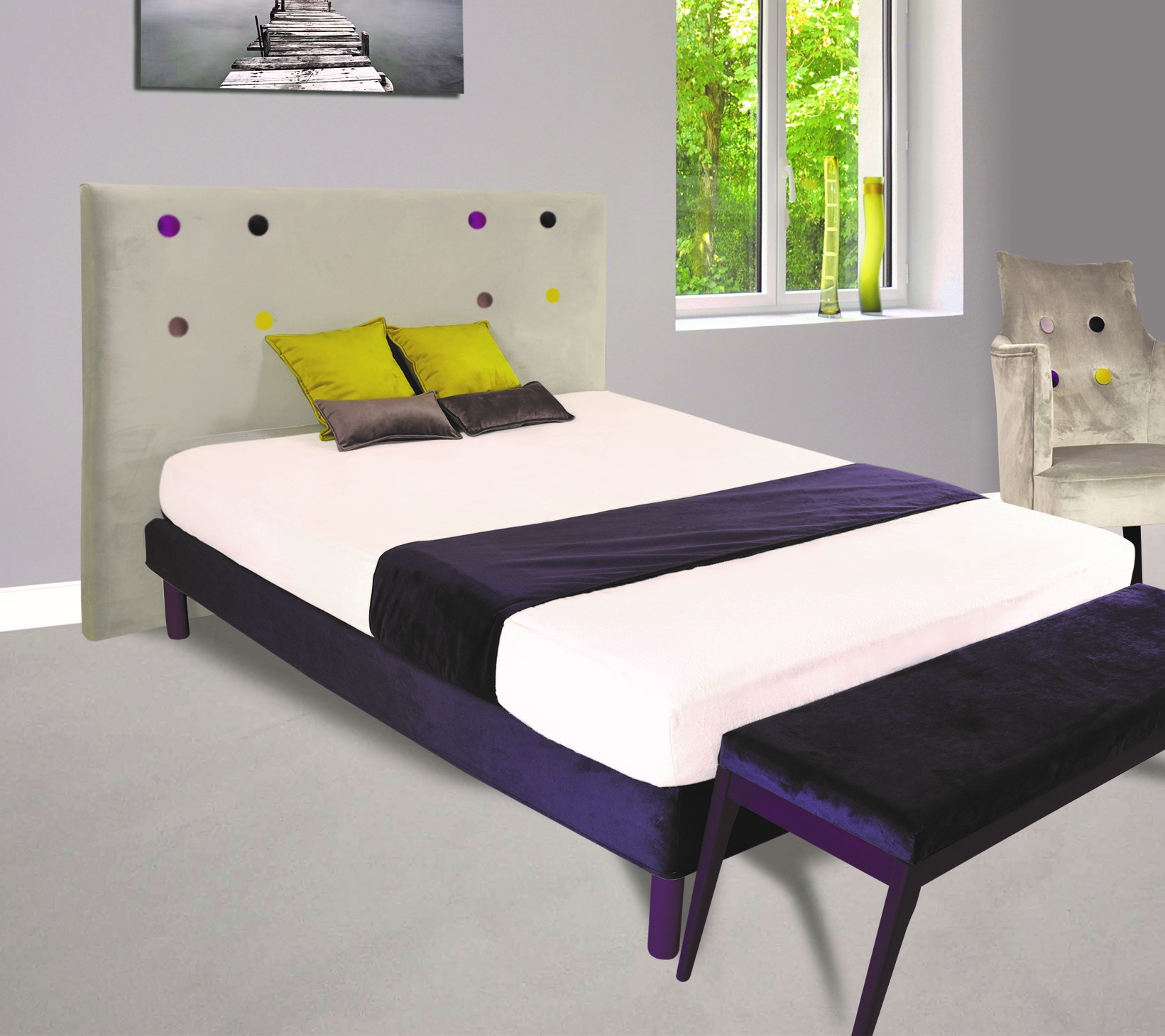Tête de lit réalisée avec un tissu traité Teflon (antitache).