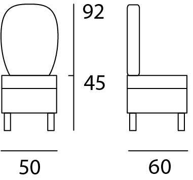 Détails Techniques : Structure en hêtre massif assise tapissée sur sangle mousse polyuréthane – H 92 – L 50 – P 60 – H ass. 45 – Poids 7,9 kg