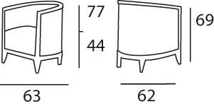 Détails Techniques : Structure en hêtre massif assise tapissée sur sangle élastique mousse HR 40 kg/m3 – Assemblage tenons mortaises – H 77 – L 63 – P 61 – H acc. 69 – H ass. 44 – Poids 16 kg