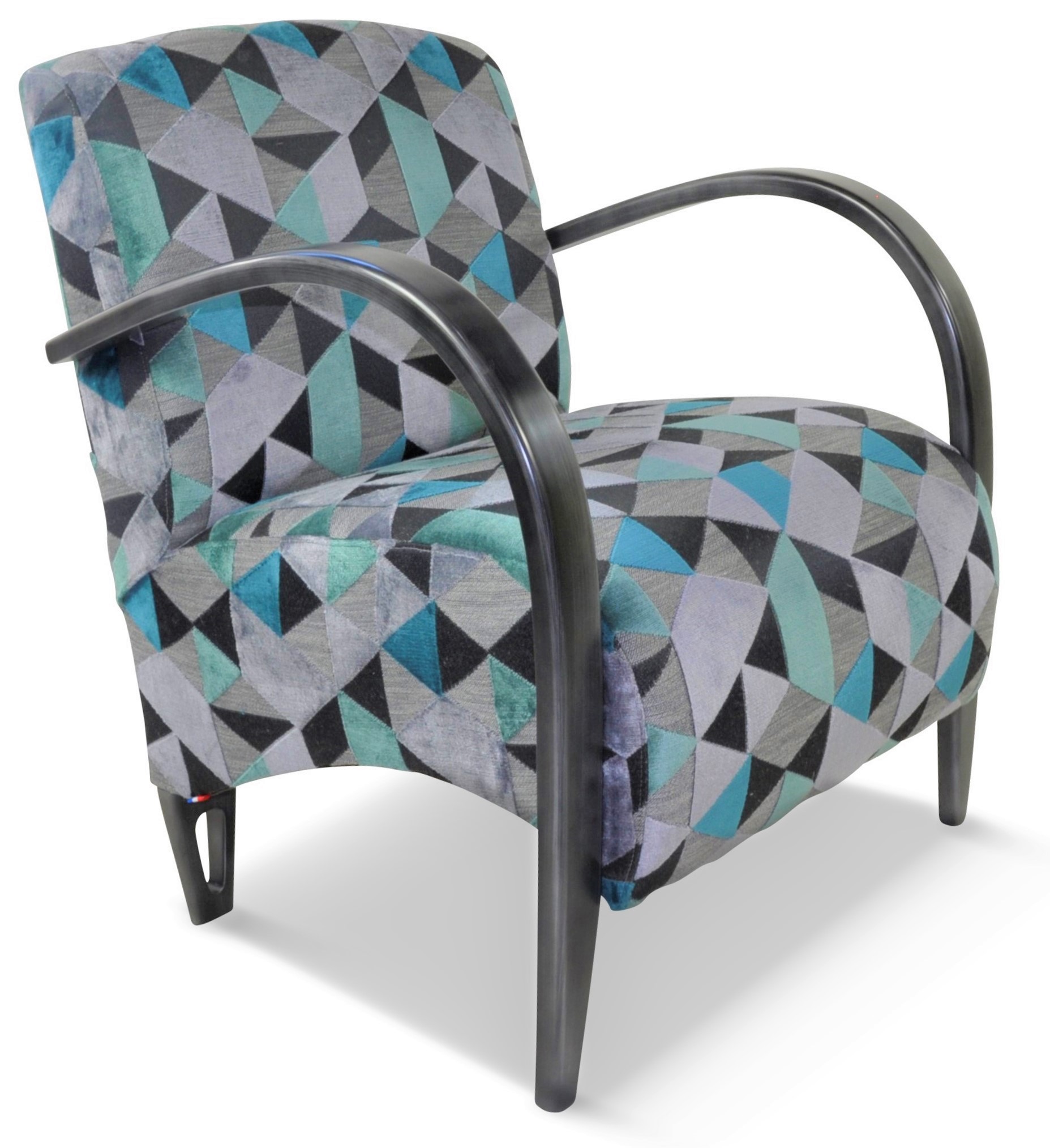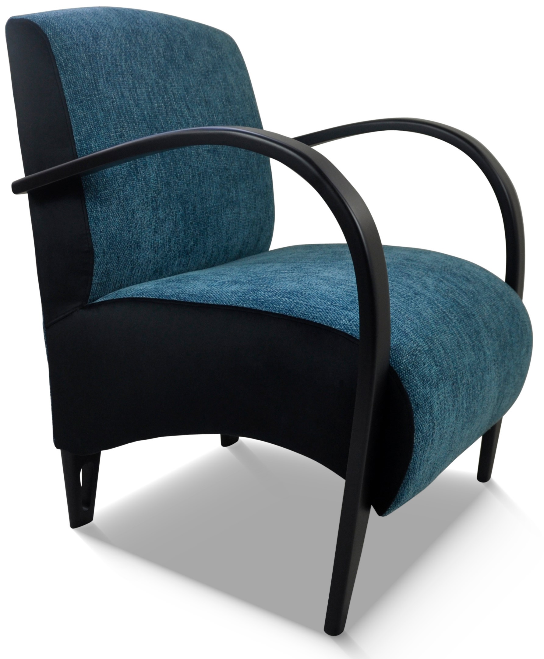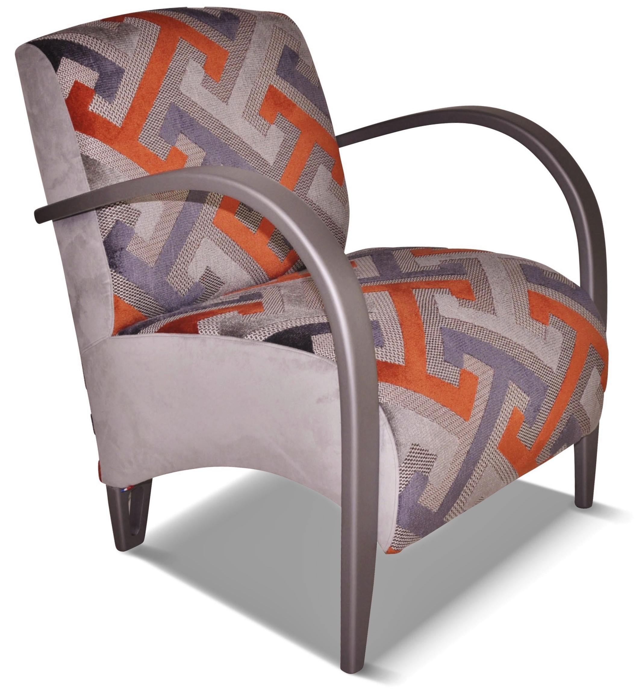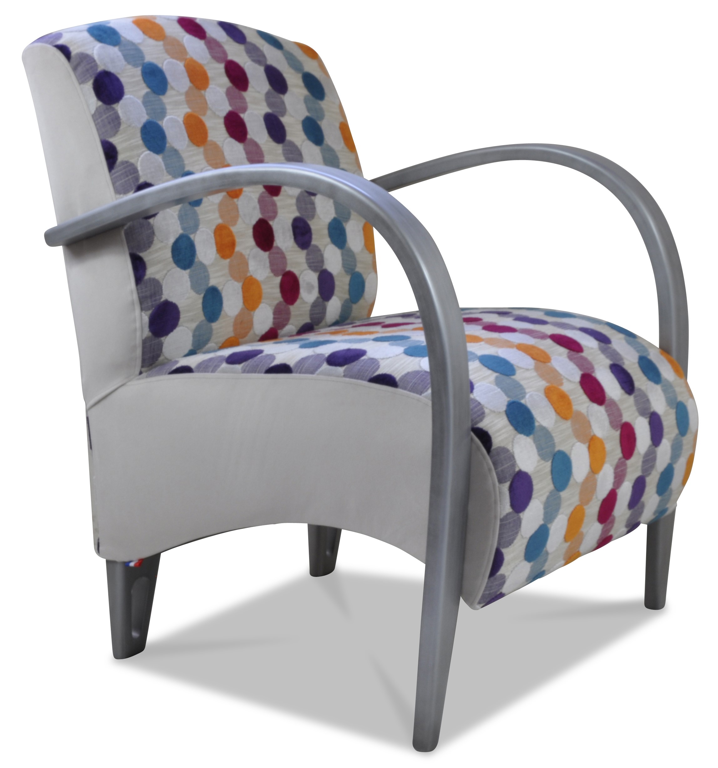Fauteuil design, galbé confortable et léger. Il est entièrement personnalisable avec de nombreux tissus et une vaste palette de couleurs de bois.