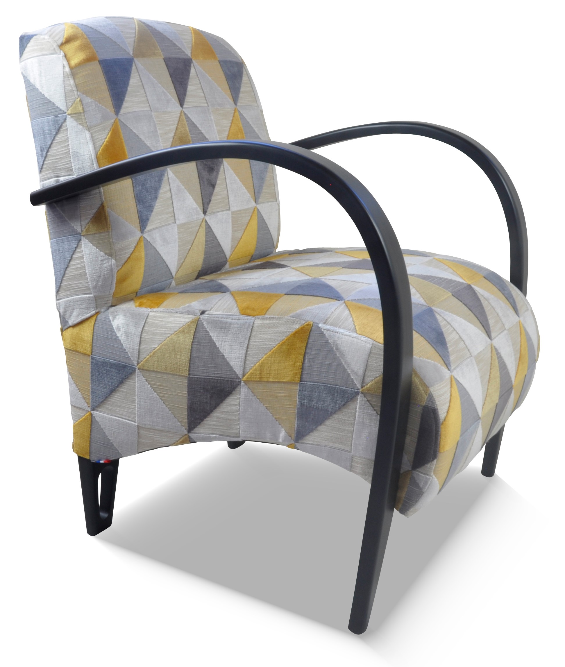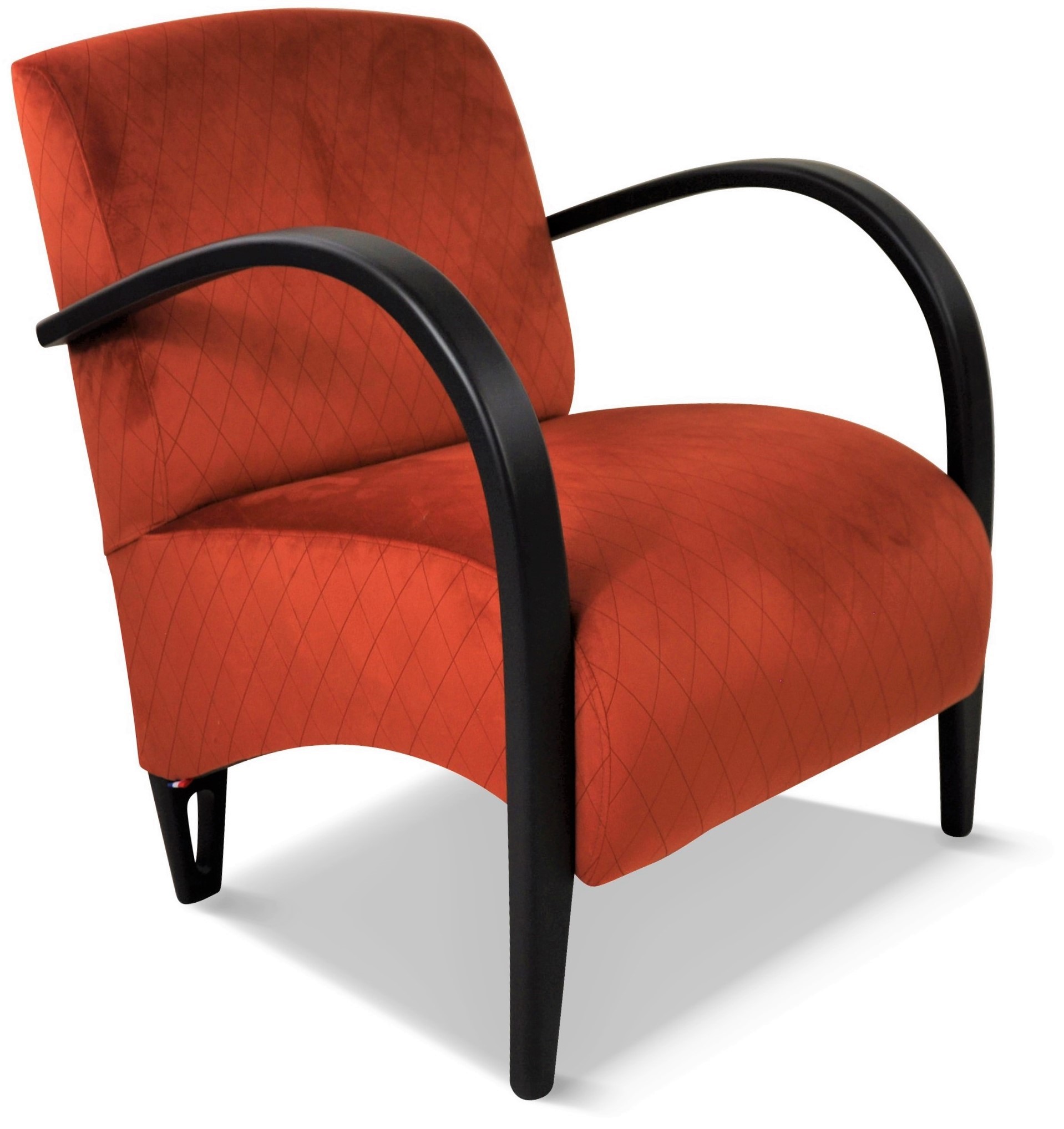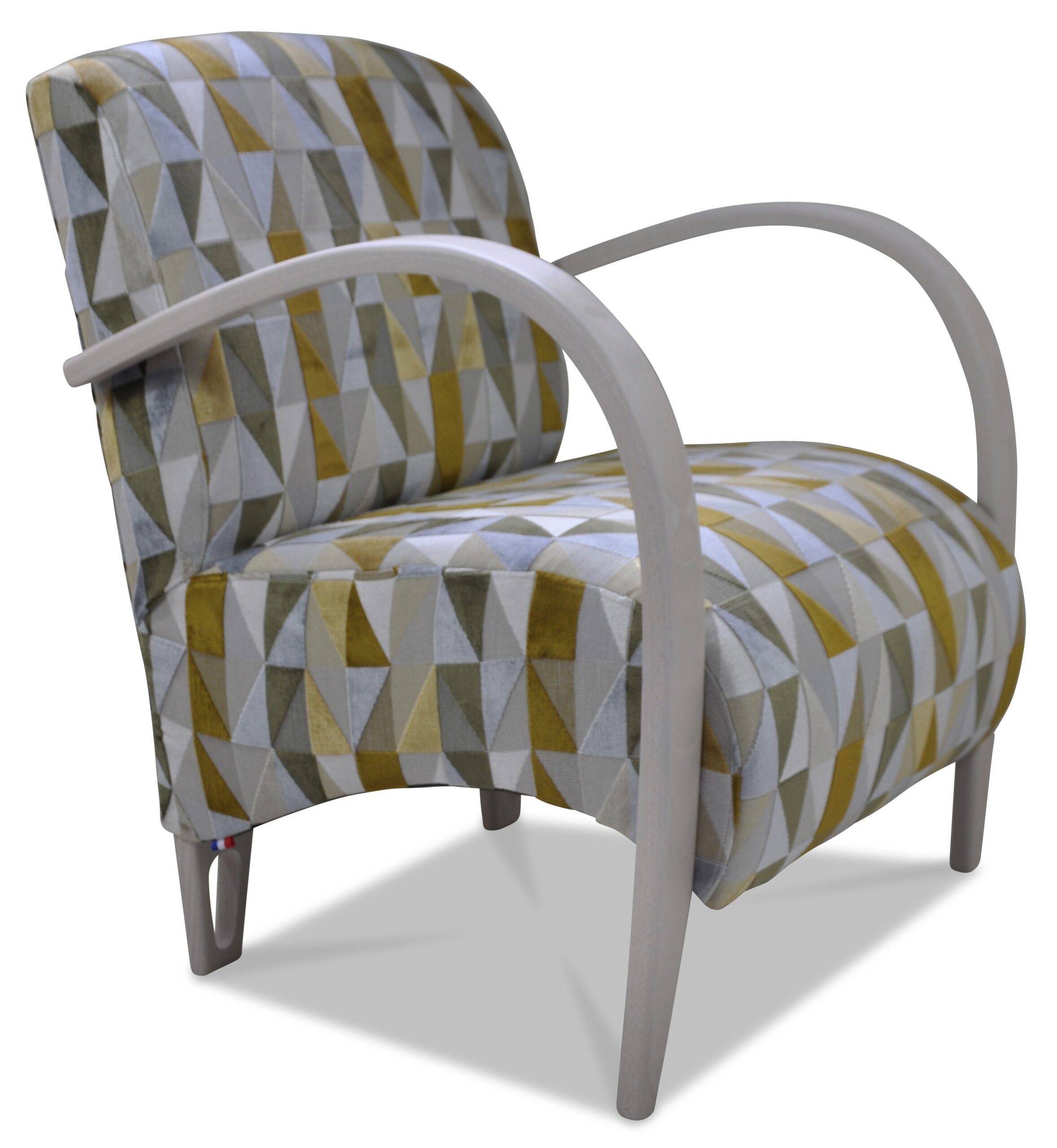 Fauteuil design, galbé confortable et léger. Il est entièrement personnalisable avec de nombreux tissus et une vaste palette de couleurs de bois.