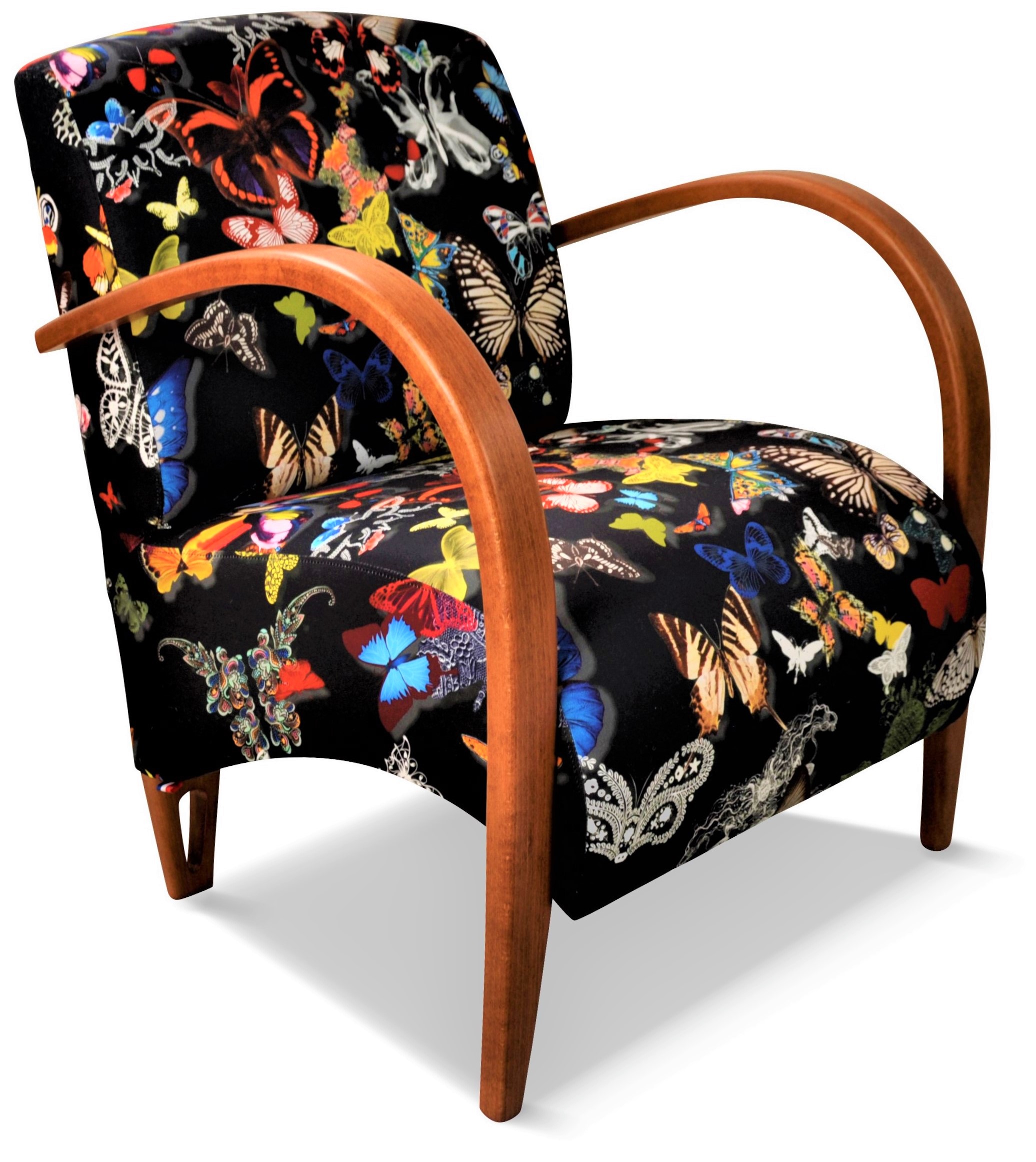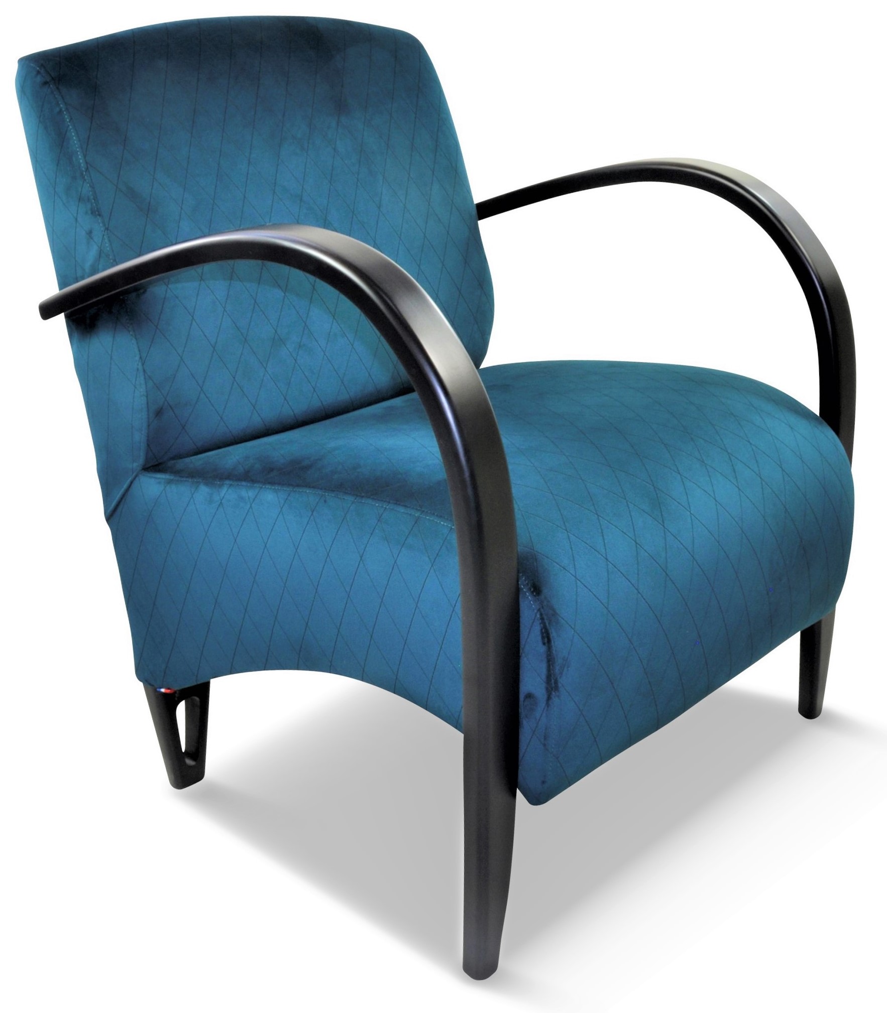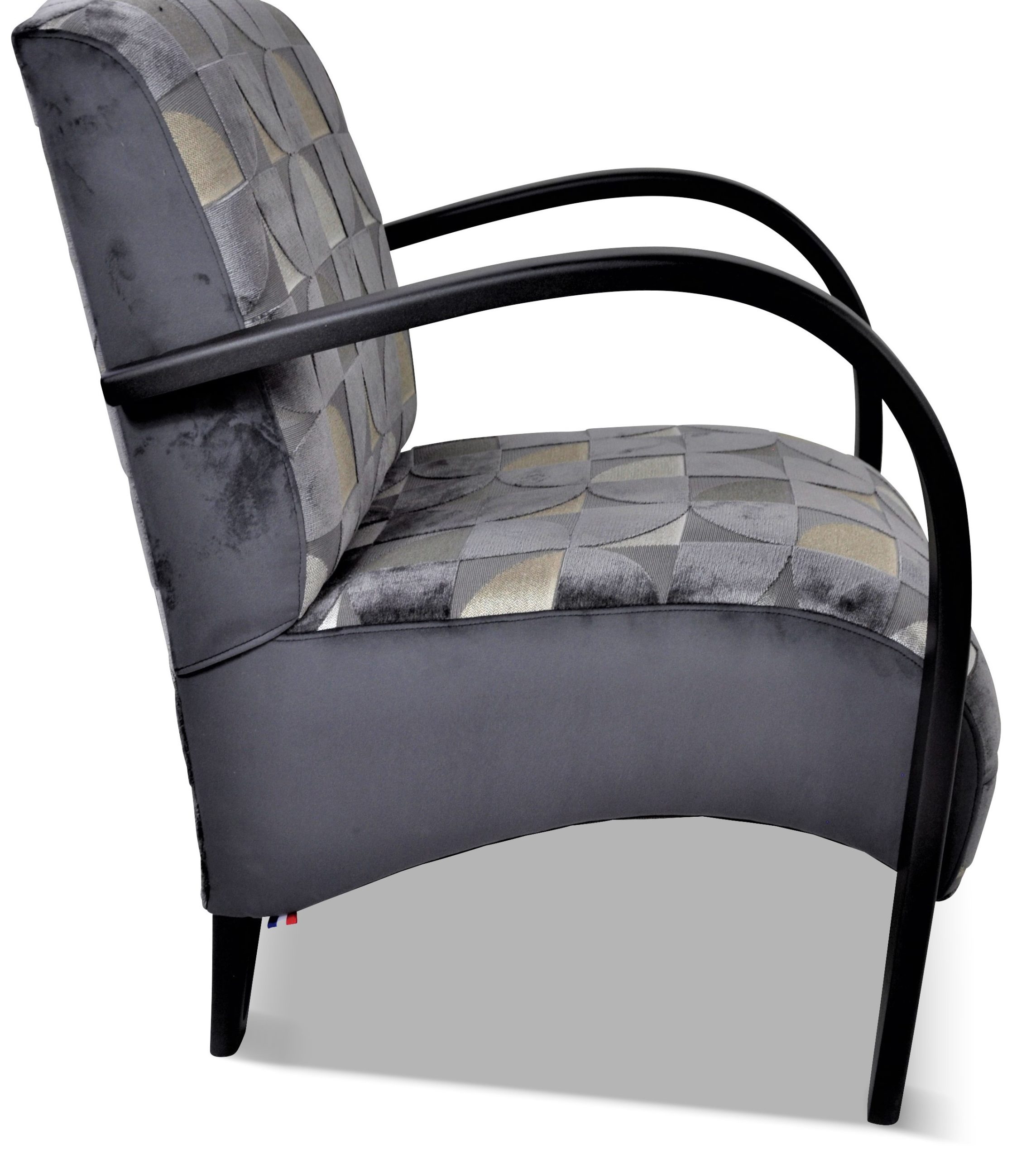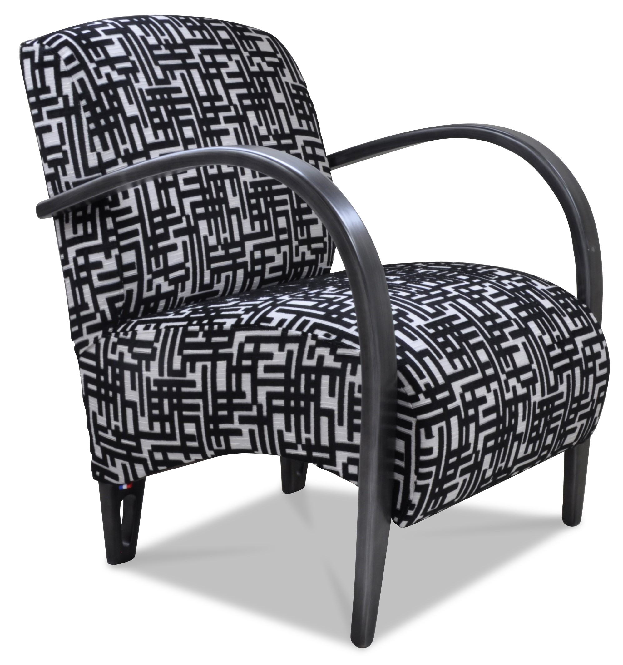Fauteuil design, galbé confortable et léger. Il est entièrement personnalisable avec de nombreux tissus et une vaste palette de couleurs de bois.