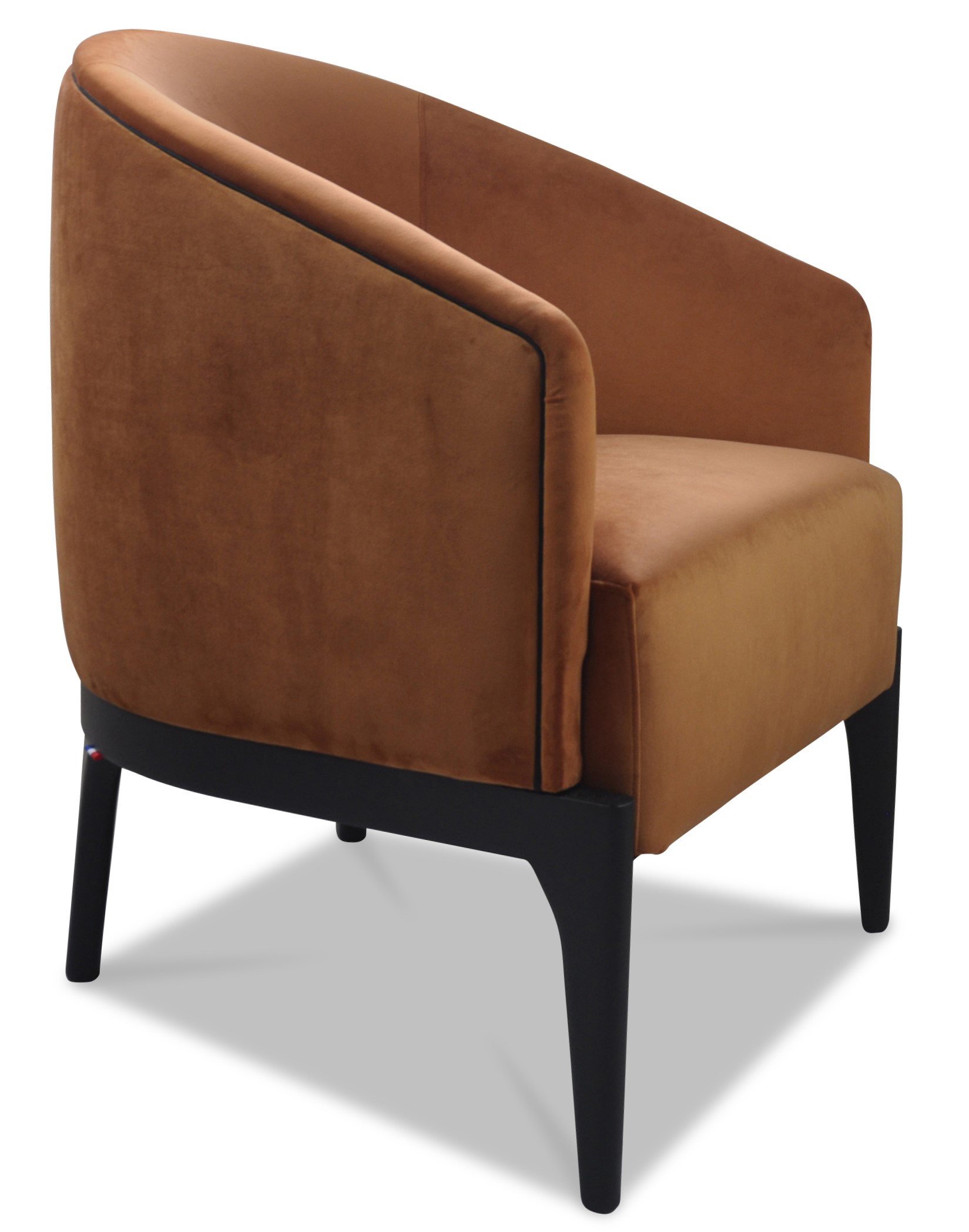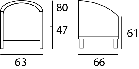 Détail Techniques : Structure en hêtre massif – mousses assise HR 40 kg/m3 dossier 25 kg/m3– H 80 – L 63 – P 65 – H acc. 61 – H ass. 45 – Poids 16 kg
